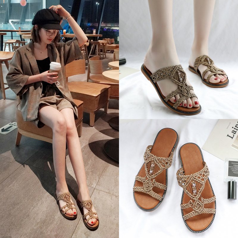 Плетеные тапочки, обувь, нескользящие слайдеры для матери, большой размер, мягкая подошва