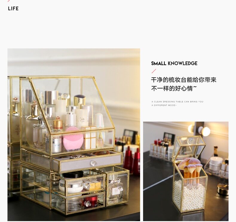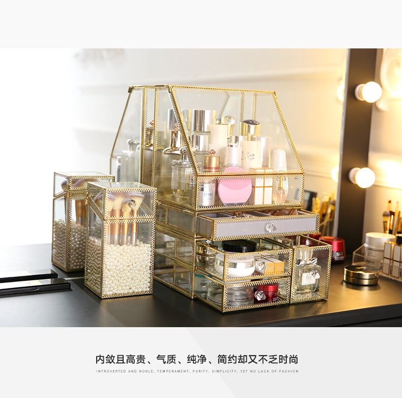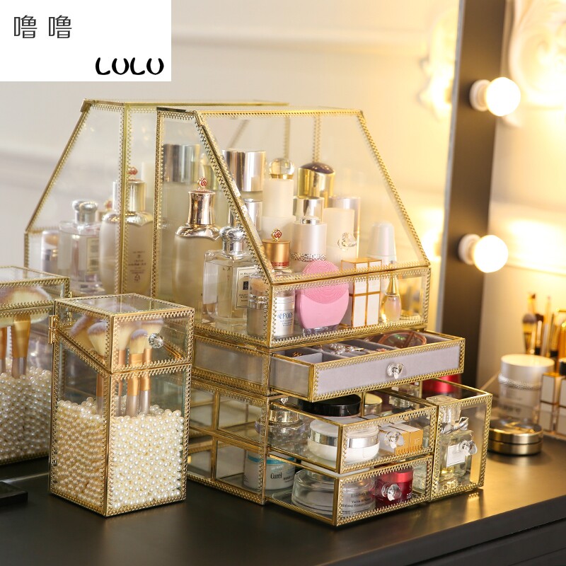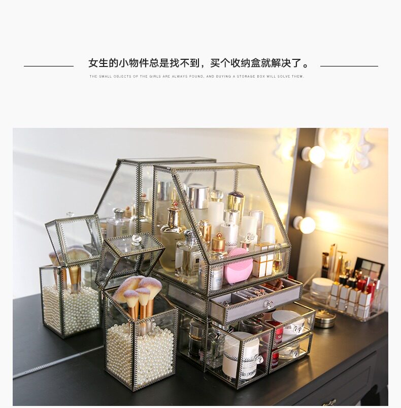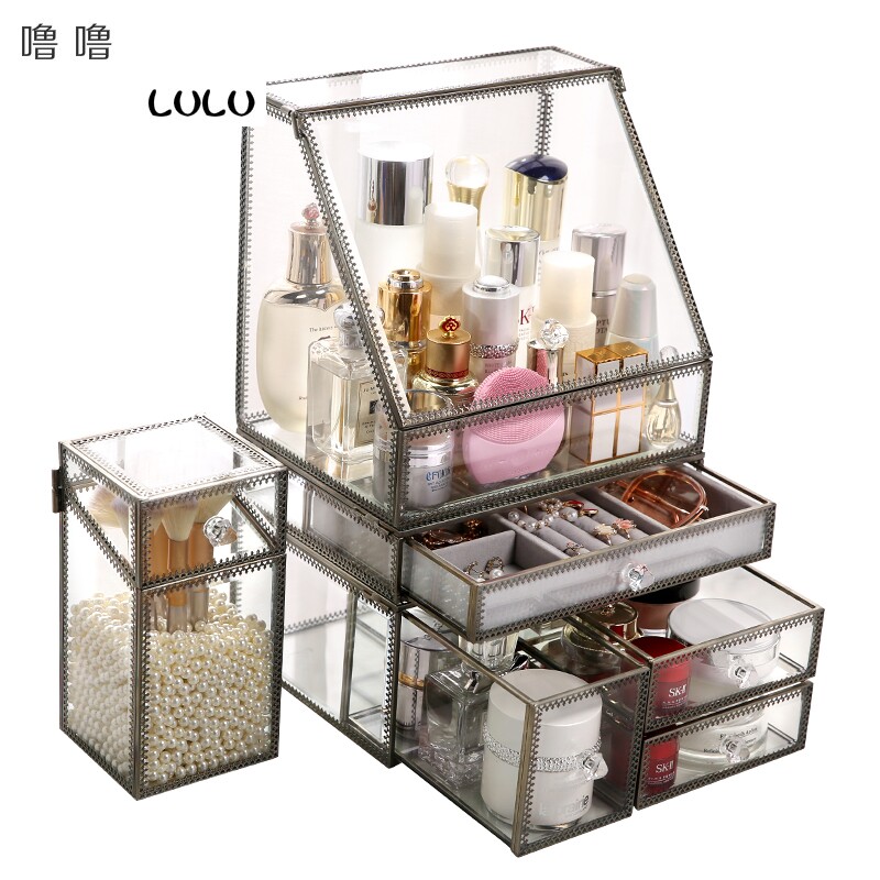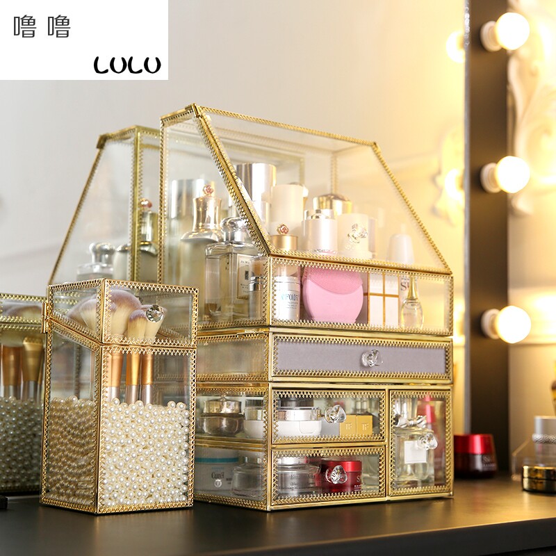 Настольная косметическая коробка для хранения, серьги, кисть, европейский стиль