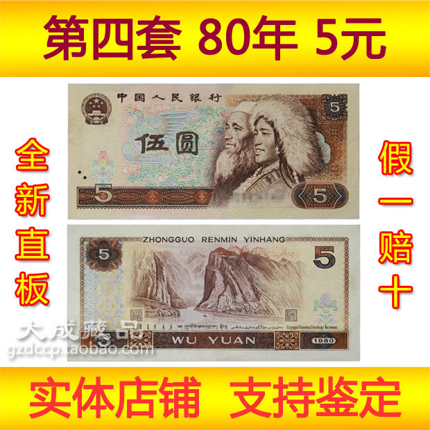 1980 5 Yuan Banknote New Pright Board, четвертый набор из коллекции RMB 805 Five Yuan Coins, четвертое издание Wu Yuan