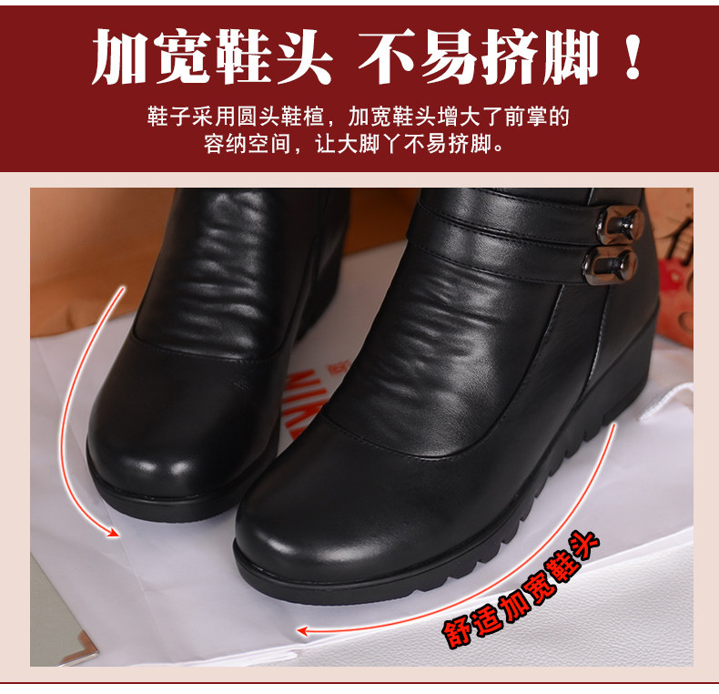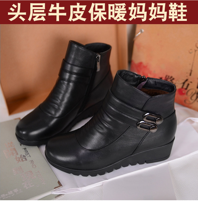 Зимняя флисовая удерживающая тепло обувь для матери для кожаной обуви, из натуральной кожи, мягкая подошва, для среднего возраста, большой размер