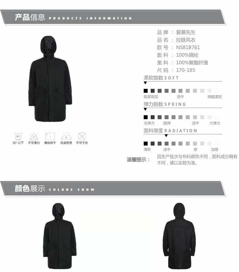 Aimer Men, Mran Men, легкая пальто, длинная молния NS81B761