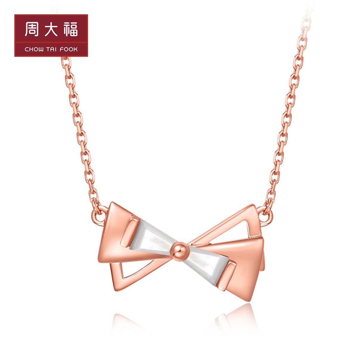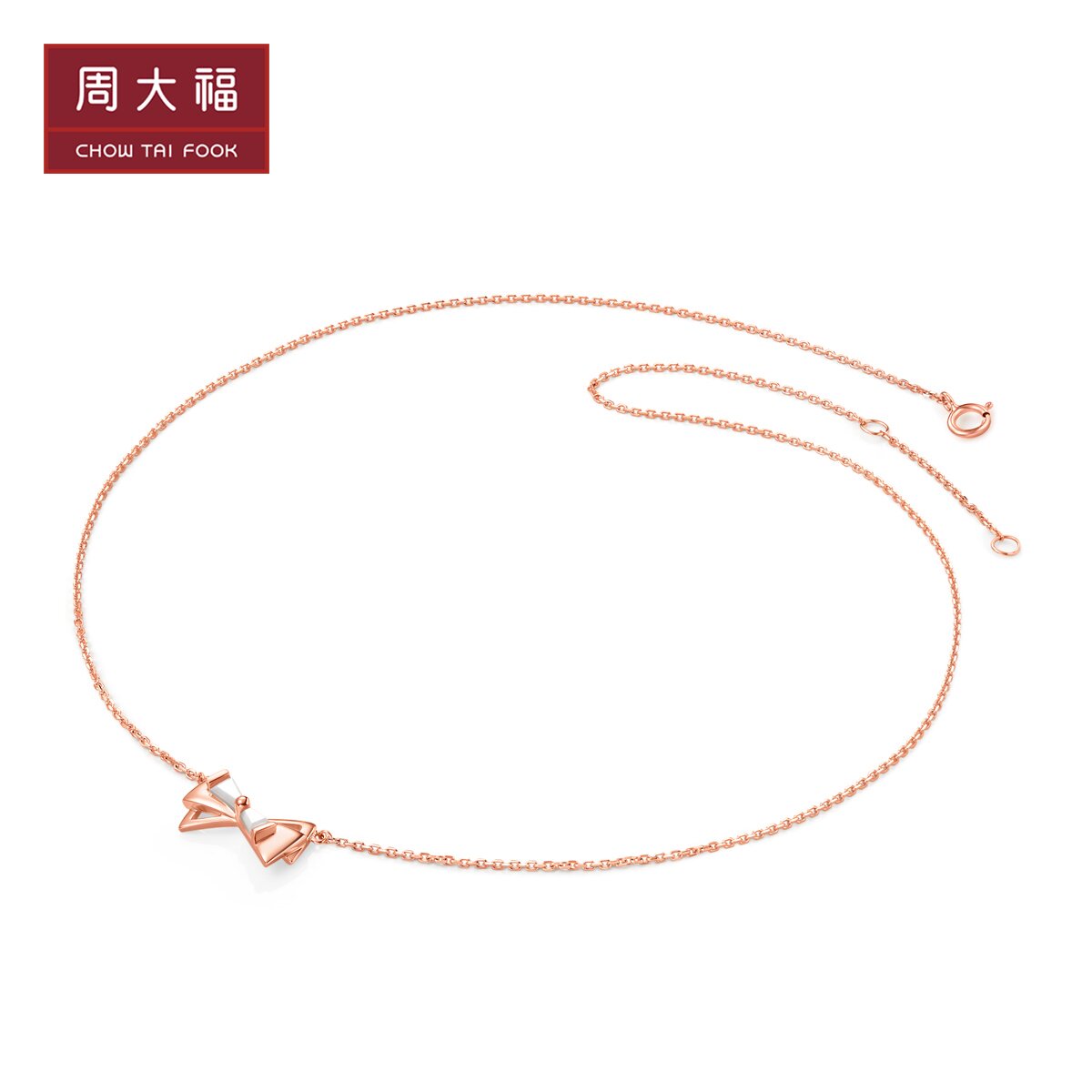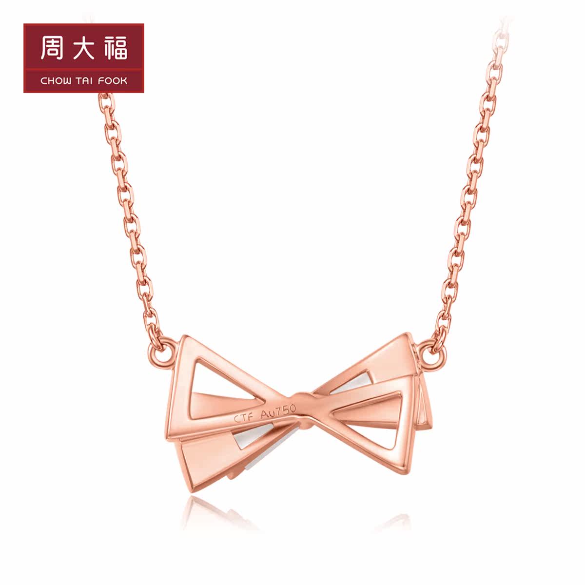 周大福 Ожерелье с бантиком, подвеска, простой и элегантный дизайн, золото 750 пробы