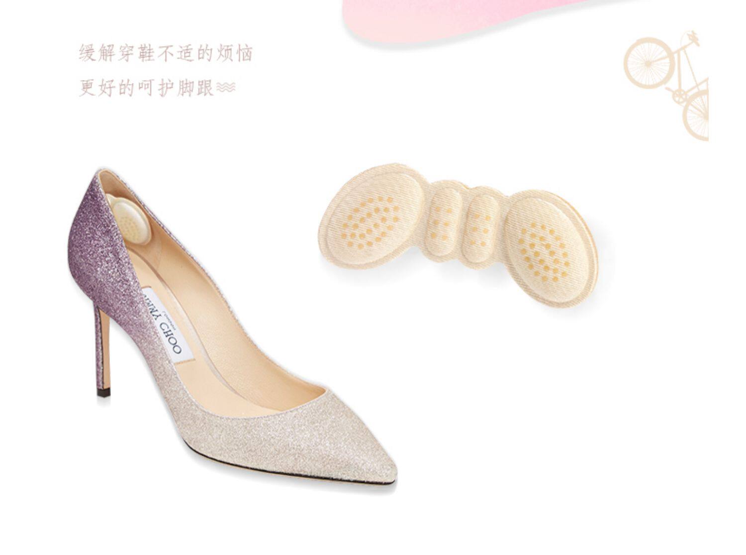 Туфли на высоком каблуке, напяточники, износостойкие наклейки на ноги, регулирует размер обуви