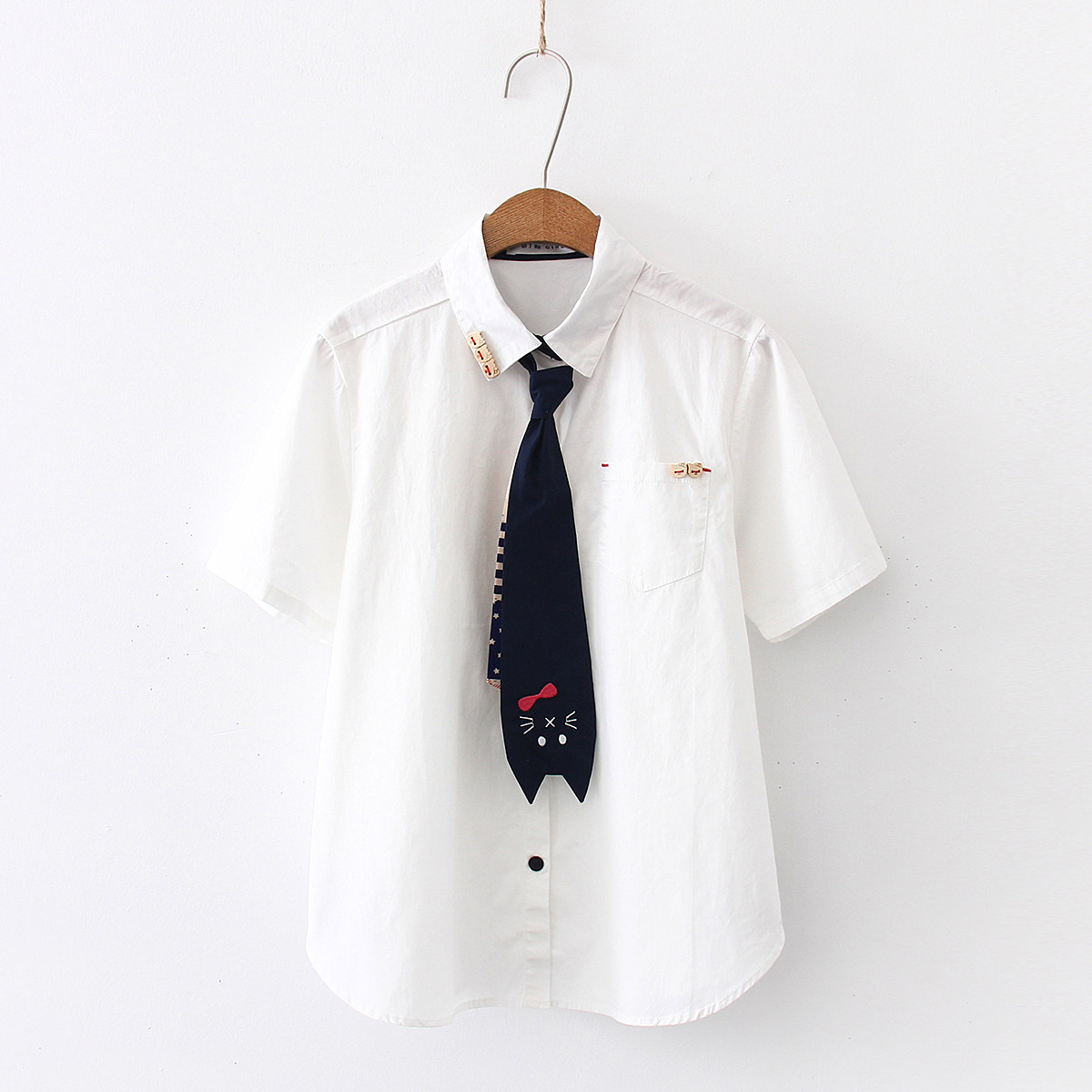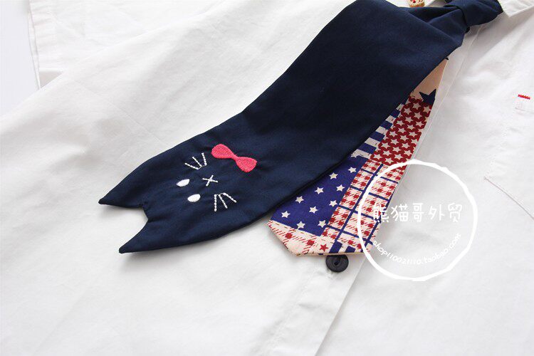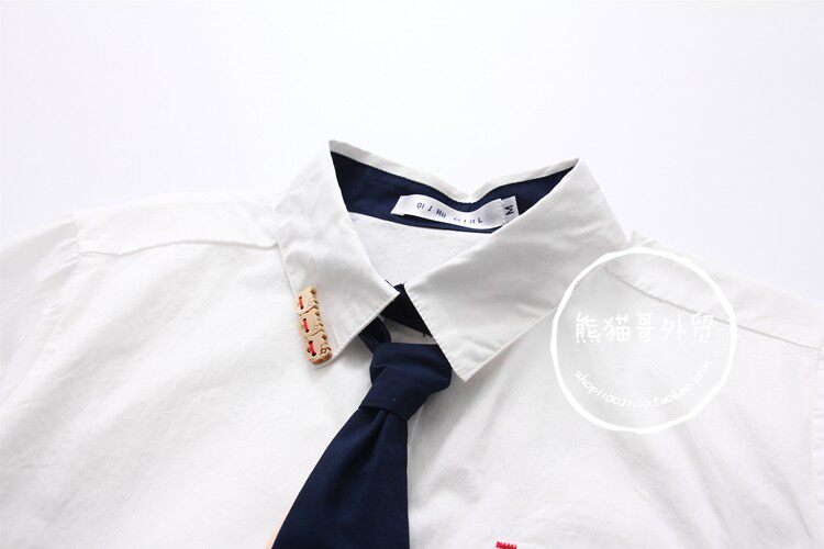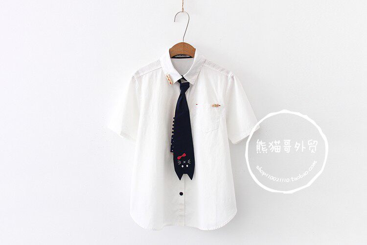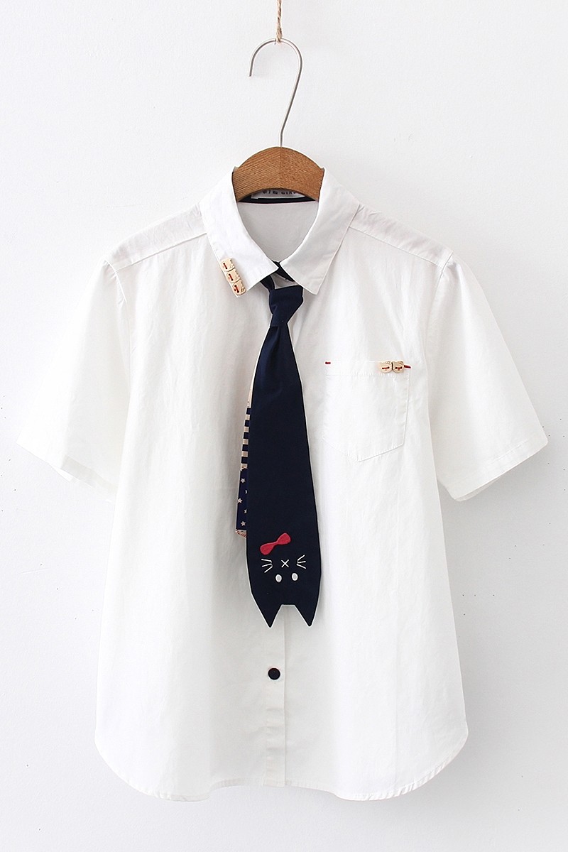 Милый галстук, рубашка, летняя одежда для школьников и студентов, с вышивкой, короткий рукав
