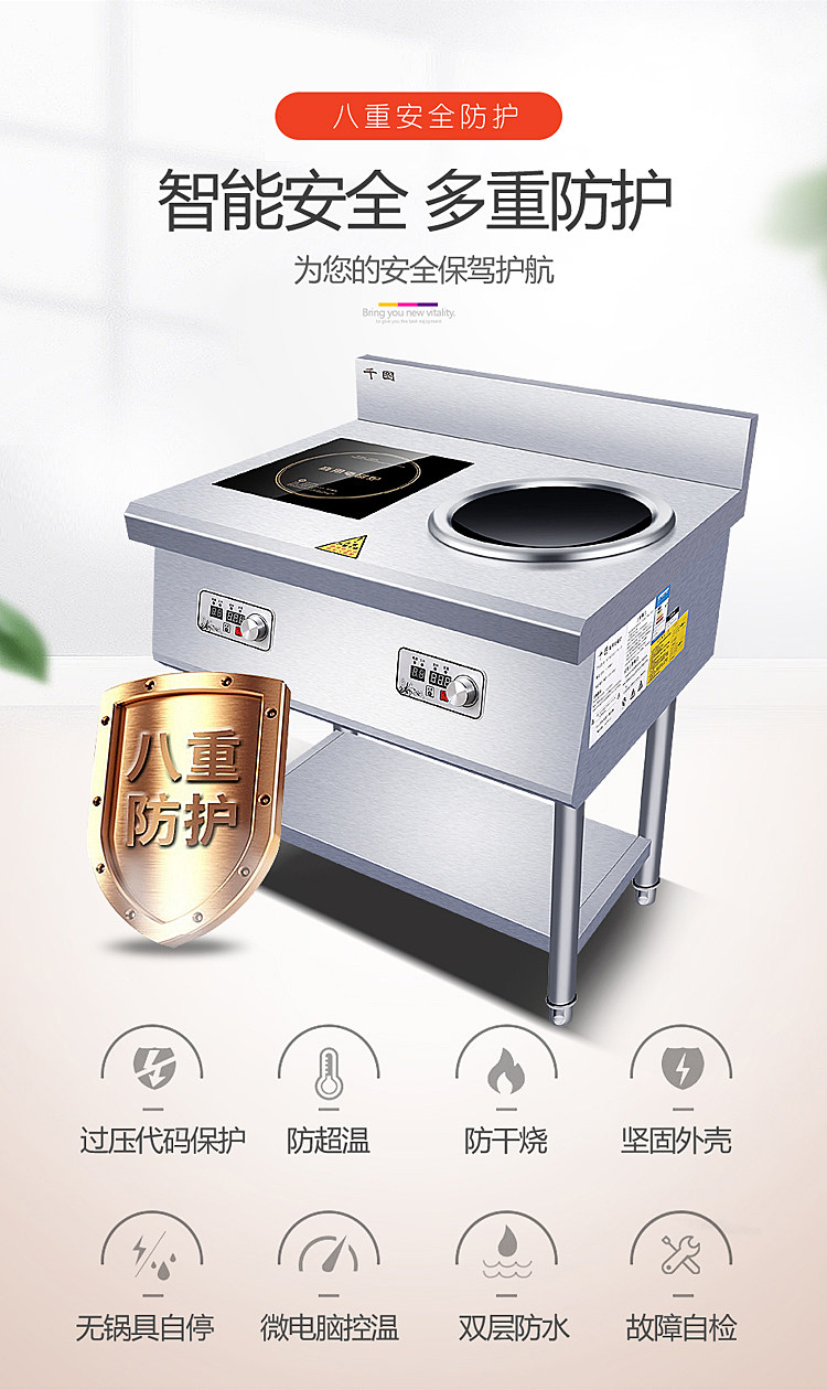 Коммерческая электромагнитная плита плоская двойная плита 5000 Вт.