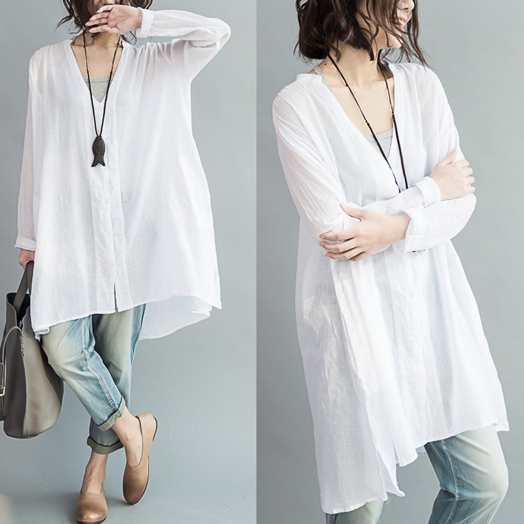 Летняя длинная тонкая рубашка для отдыха, одежда для защиты от солнца, комплект, большой размер, V-образный вырез, оверсайз, средней длины