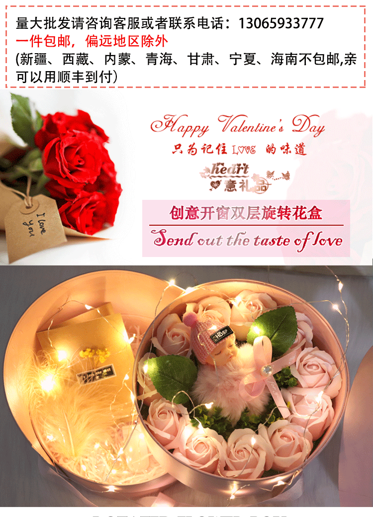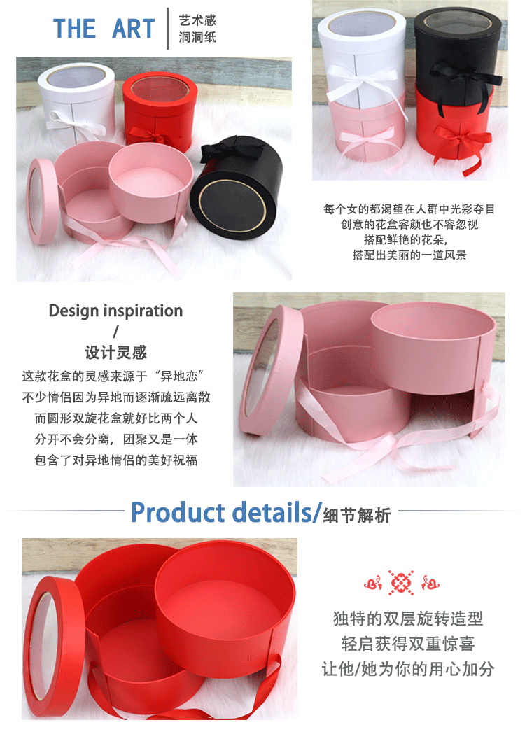 Творческое открытие окна двойная -слоя вращающаяся цветочная коробка подарочная коробка Douyin Surpry Box Festival's Festival Festival Cantonse Diref Box