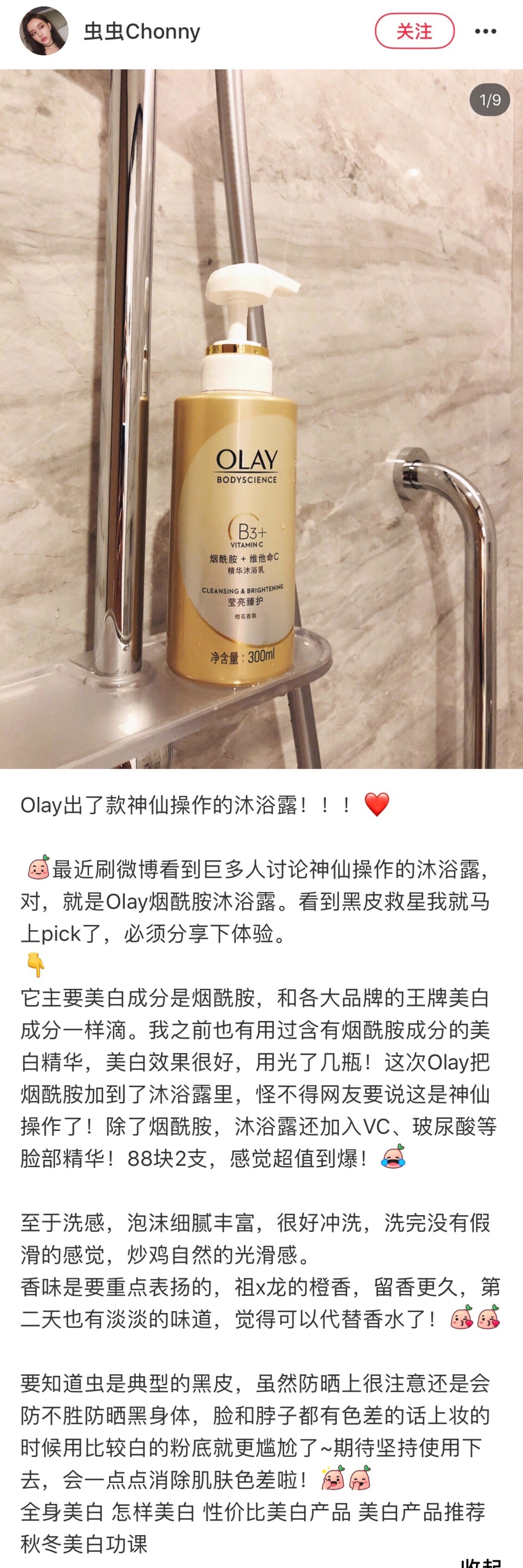 Olay, эссенция содержит никотиновую кислоту, осветляющий парфюмированный гель для душа, 300 мл