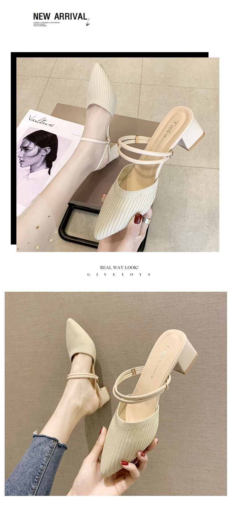 Трикотажная обувь, тапочки с заостренным носом, сандалии, коллекция 2021, в корейском стиле