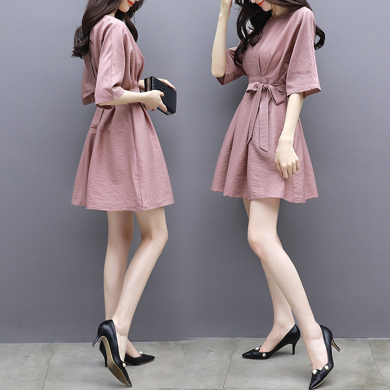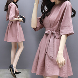 Платье, короткая юбка, подходит для подростков, из хлопка и льна, высокая талия, 150см, А-силуэт, коллекция 2023