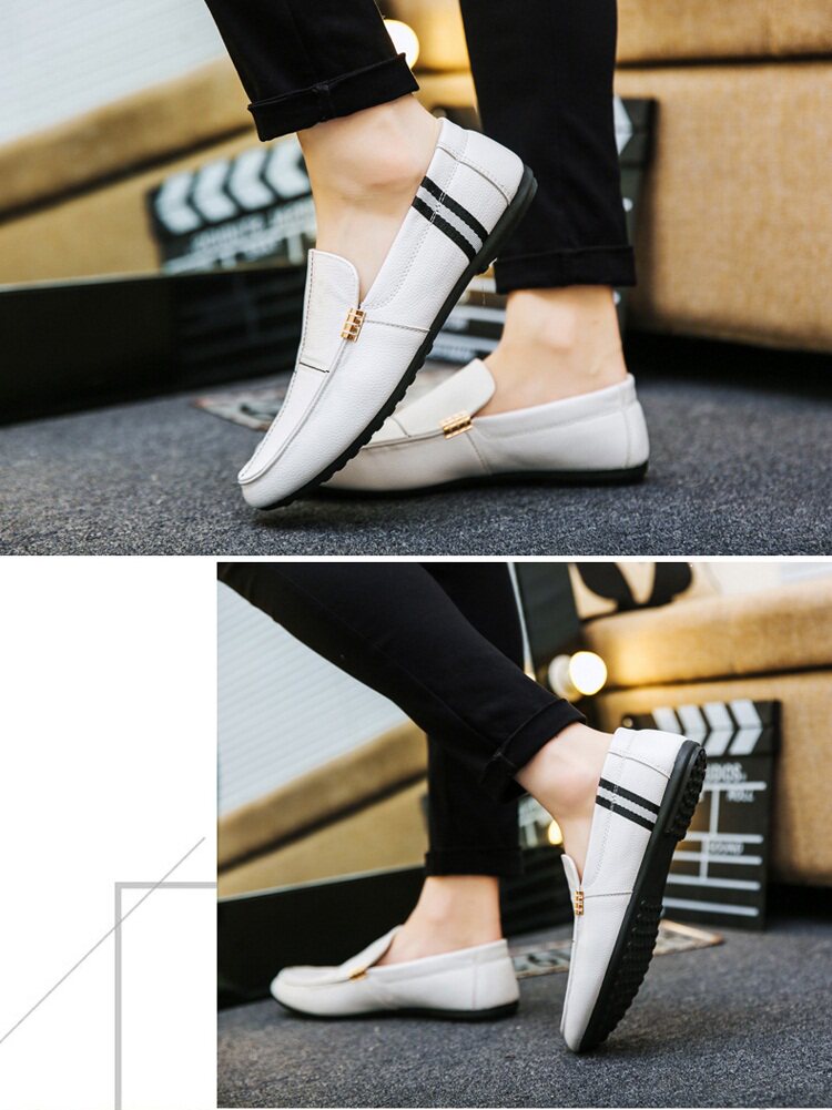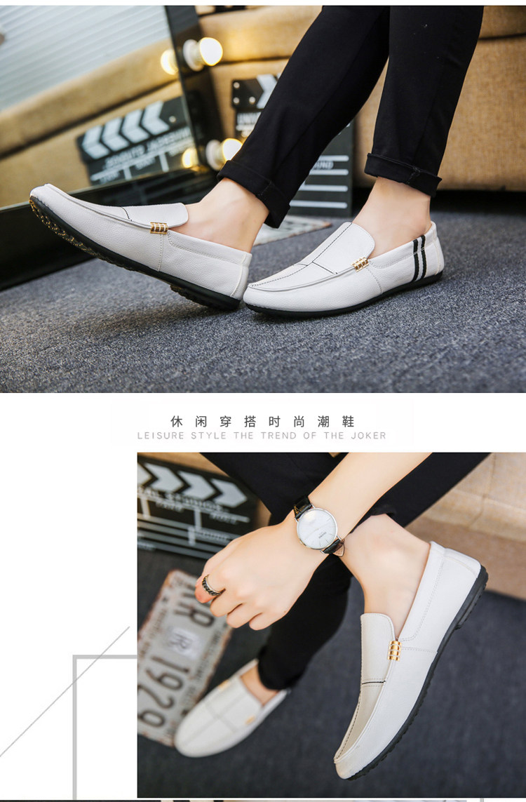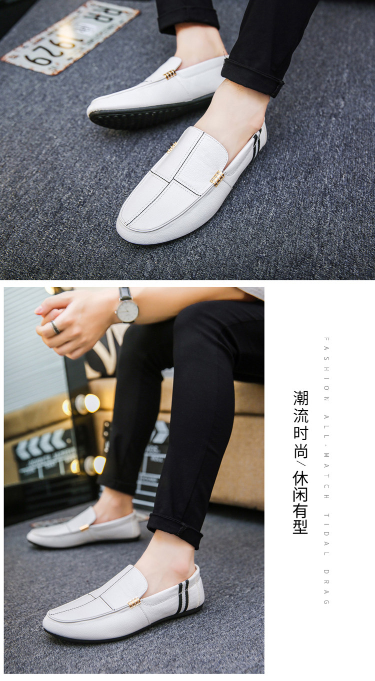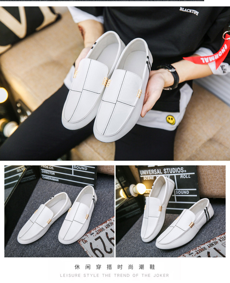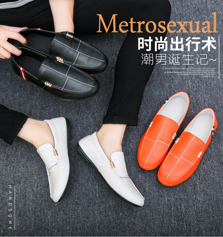 Весенние белые мужские туфли-шапочки, модные ленивые кожаные туфли в корейском стиле, повседневная обувь духовного социального парня для вождения на один шаг