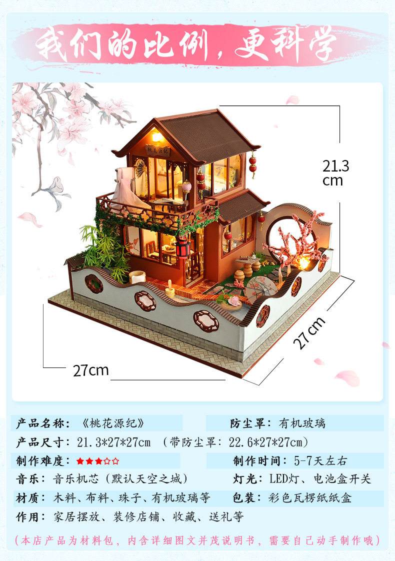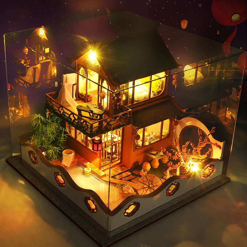 Китайская хижина, вилла, конструктор, домик, фигурка, DIY, китайский стиль, домик своими руками, подарок на день рождения