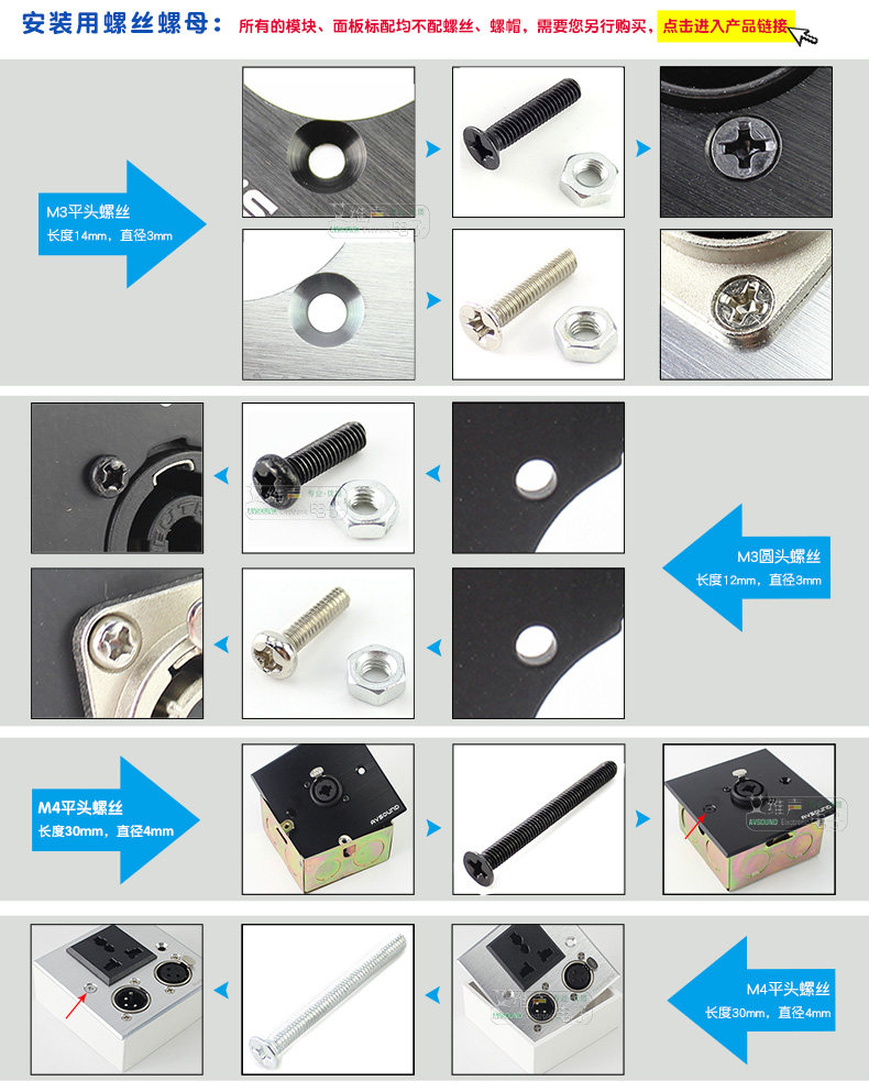 Вы также можете купитьM4, Толстый диаметр 4 мм, длина 30 мм, плоская головка, черная и серебро (в основном используется на панели 86 на нижней коробке).