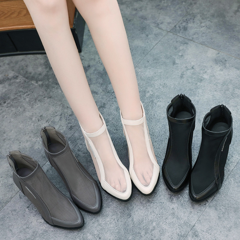 Сандалии, обувь на высоком каблуке, сетчатые сапоги, ботинки, 2020, в корейском стиле