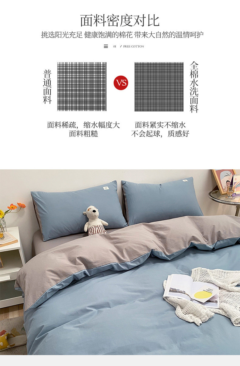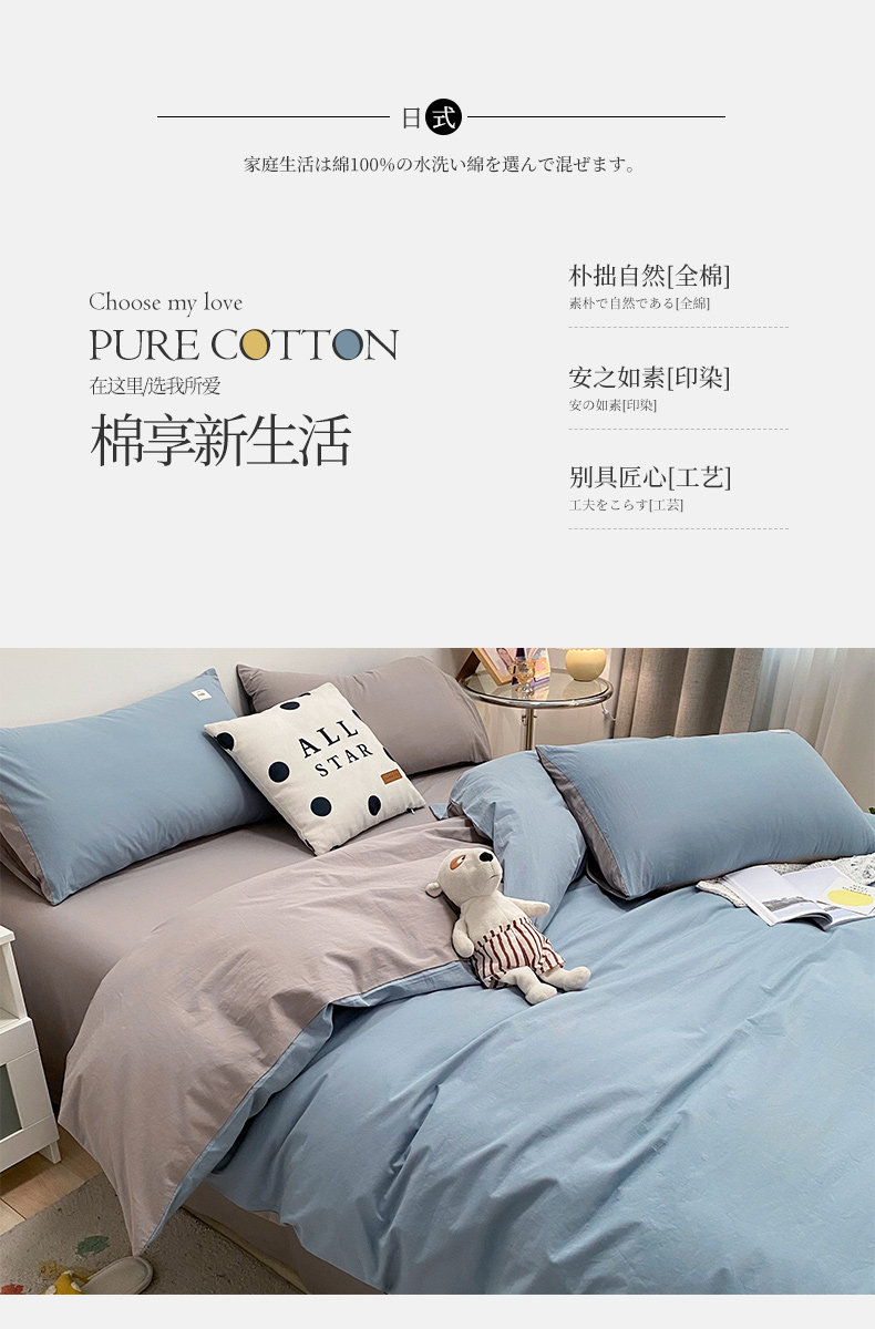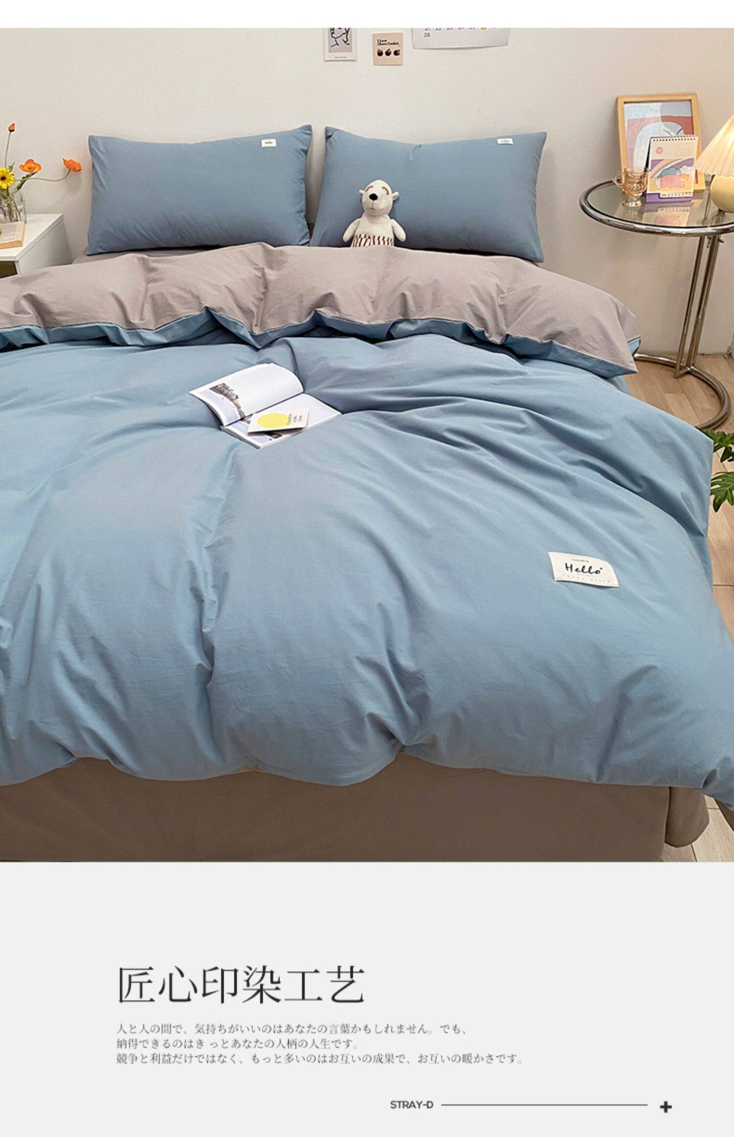Хлопковый комплект, хлопковая простыня, пододеяльник, покрывало, простой и элегантный дизайн, 4 предмета, премиум класс