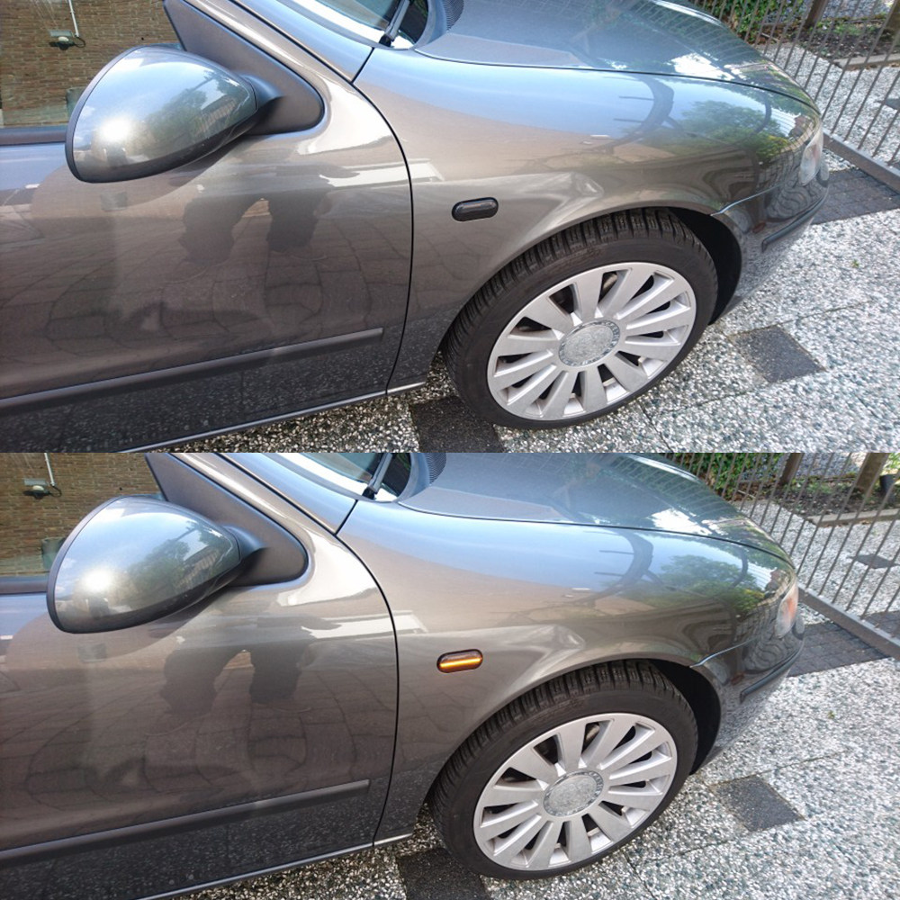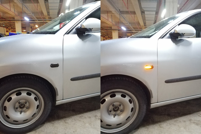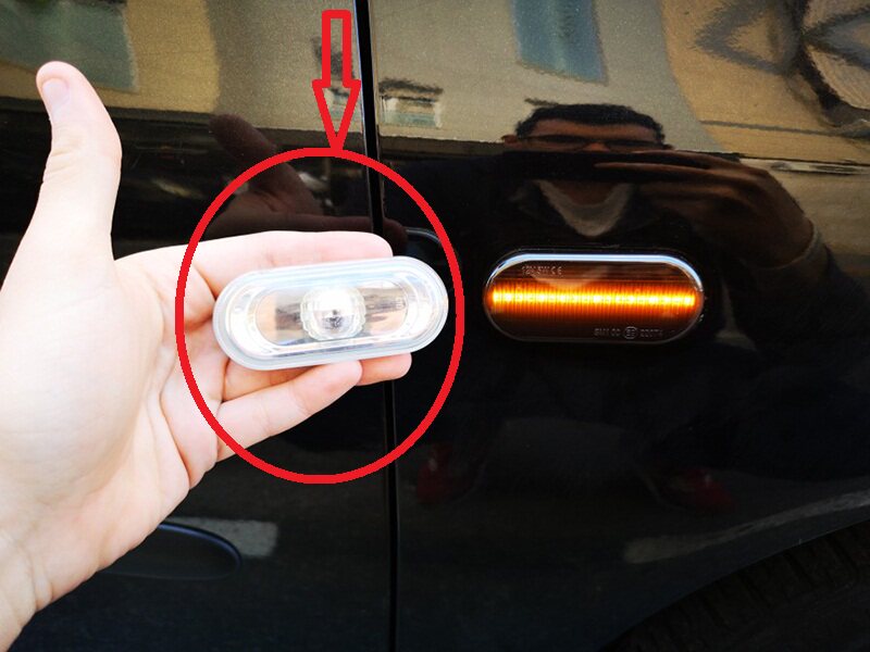 Оригинальный автомобильный боковой свет белый на левой стороне рисунка ниже.