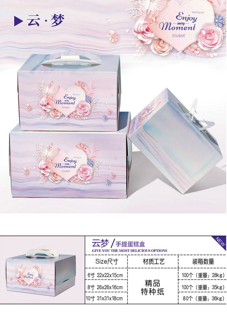 Специальный рисунок ткани Yunmeng Специальная бумажная рука -выливаная коробка для торта 6/8/10 дюйма коробка для торта на день рождения с следами поддержки нижней части