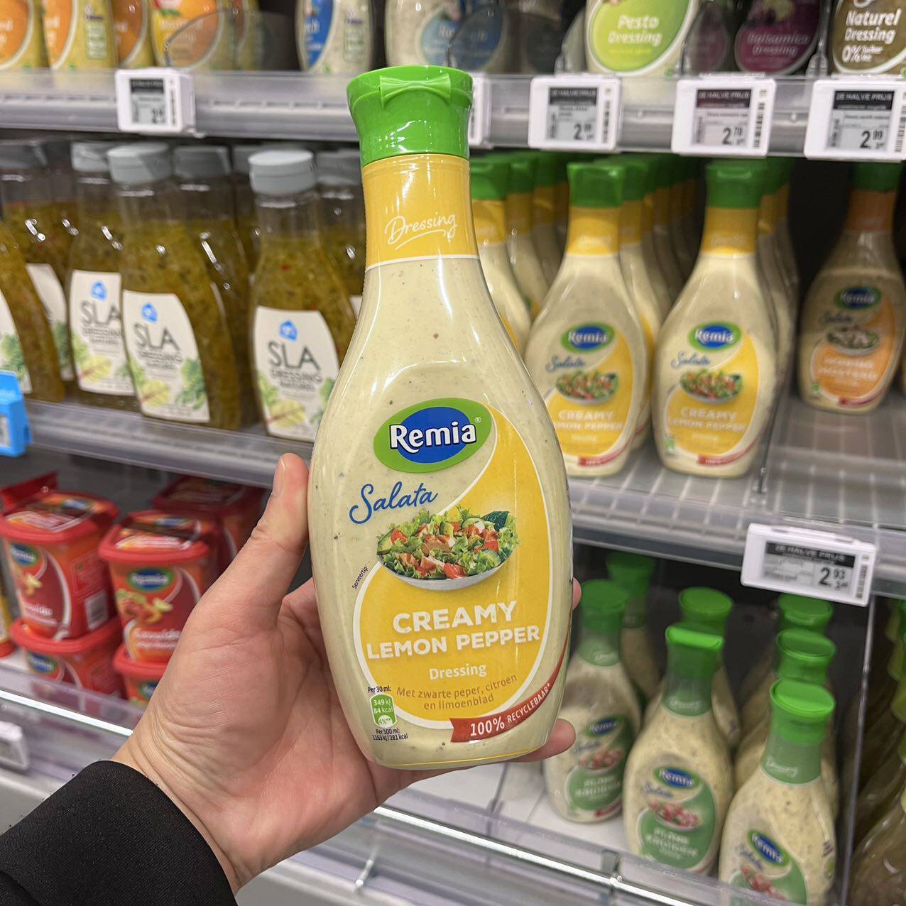 Remia Salata Cream Lemon Pepper - это сливочный соус, содержащий лимон и черный перец.
