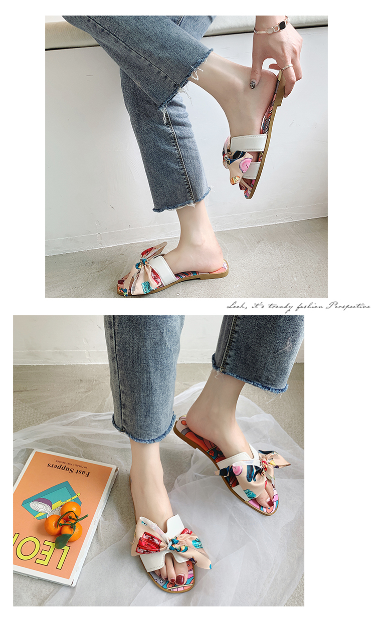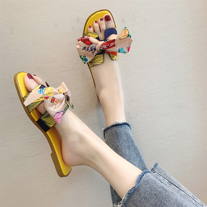 Слайдеры, модные универсальные тапочки с бантиком, пляжная обувь, популярно в интернете, коллекция 2023