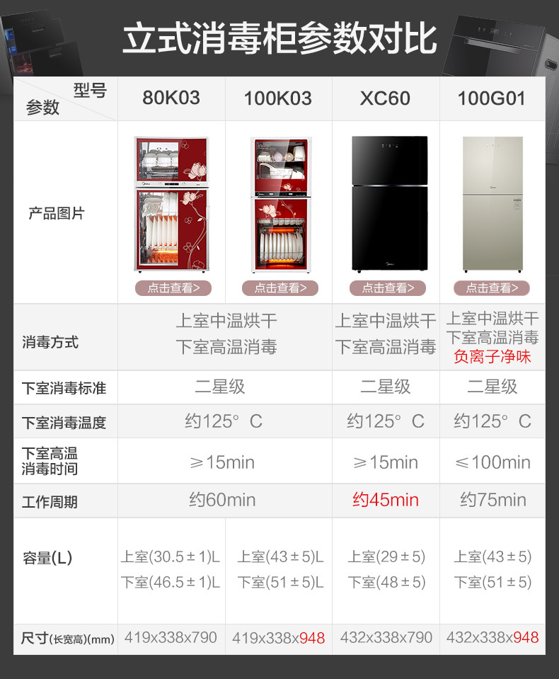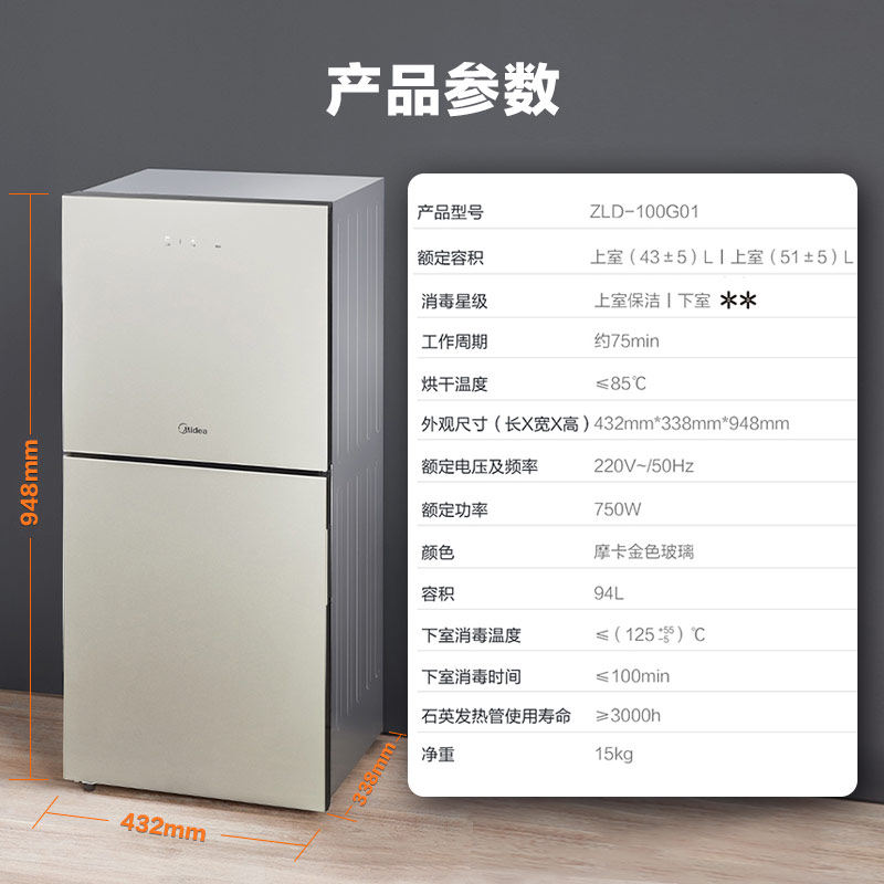 Midea 100G01 Дезинфекция шкаф дома маленький вертикальный настольный настольный столик кухонная гостиная, посуда, посуда, столовый шкаф высокотемпературный отрицательный ион