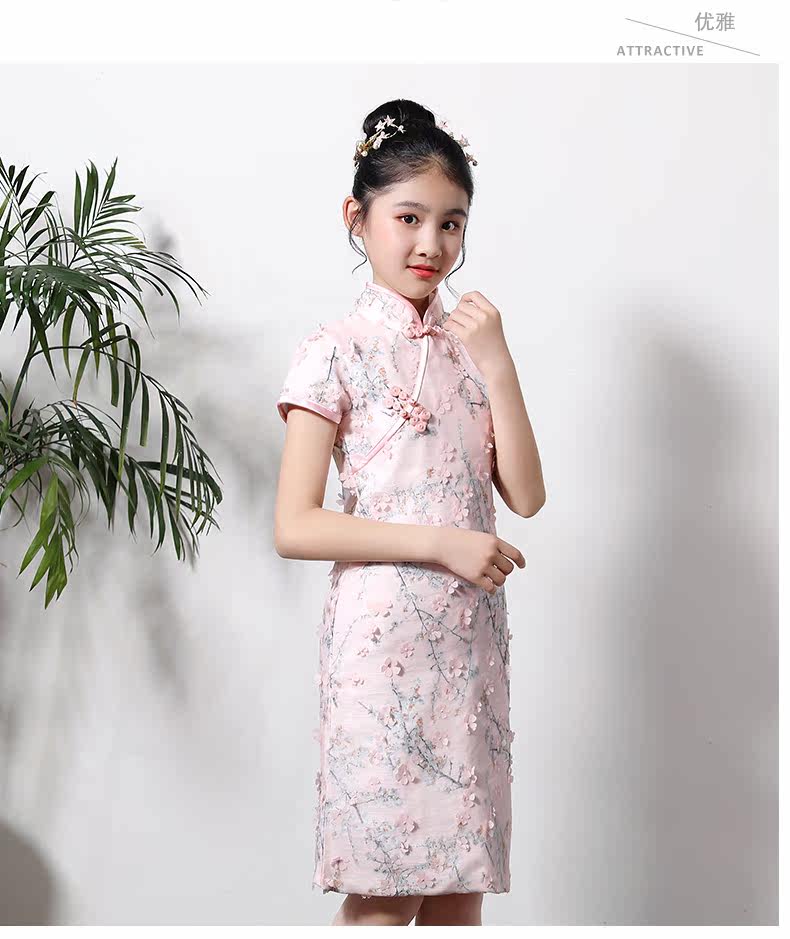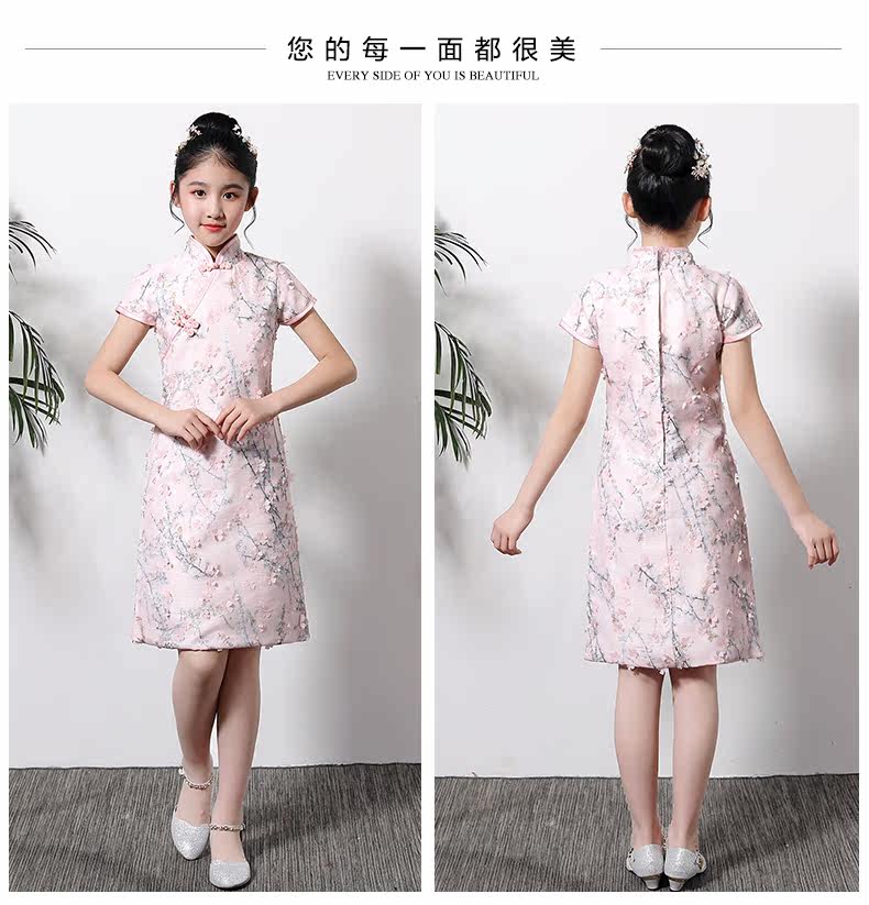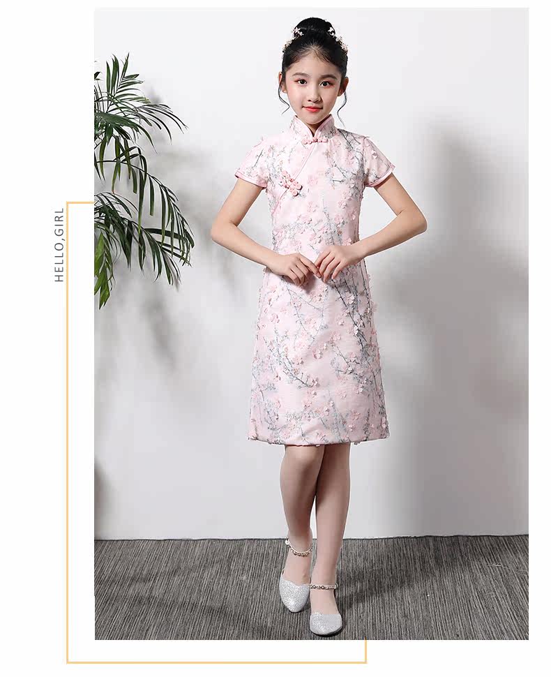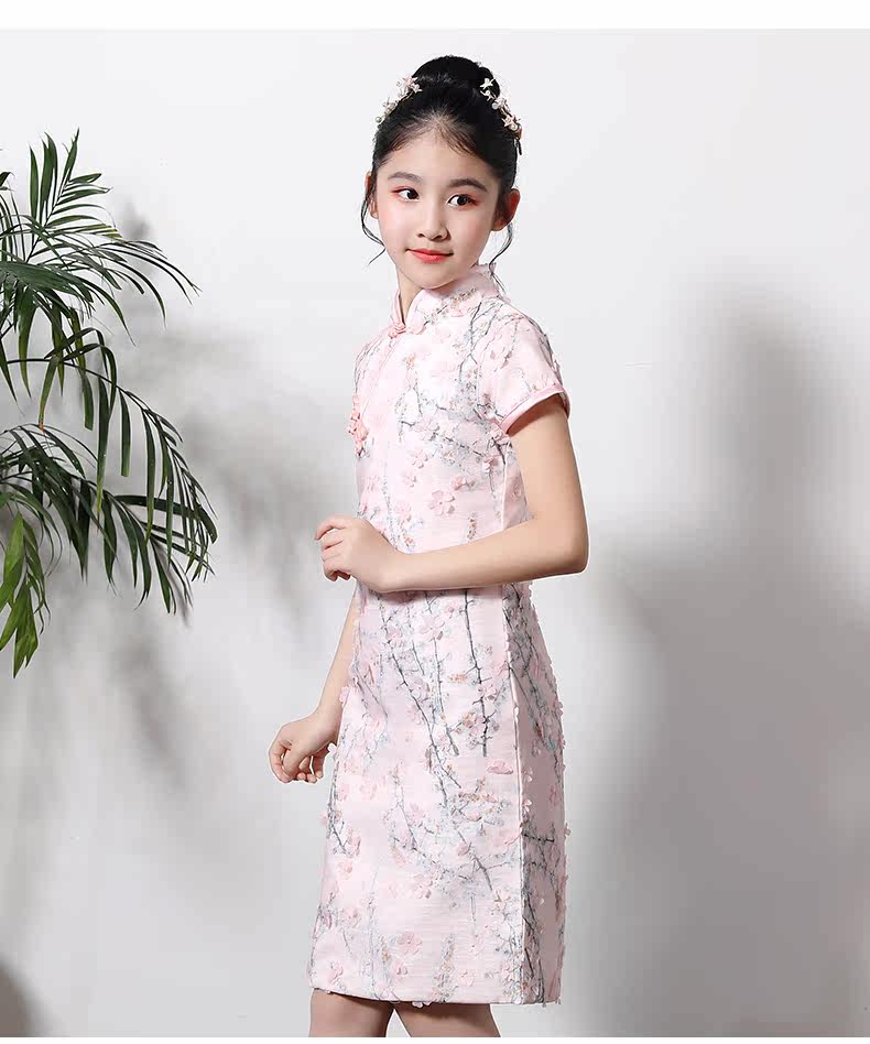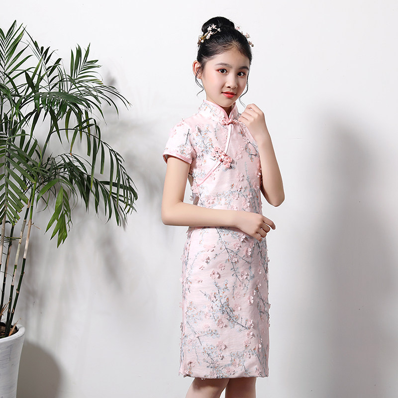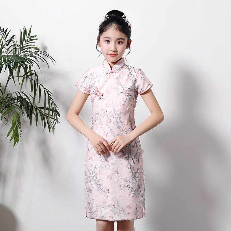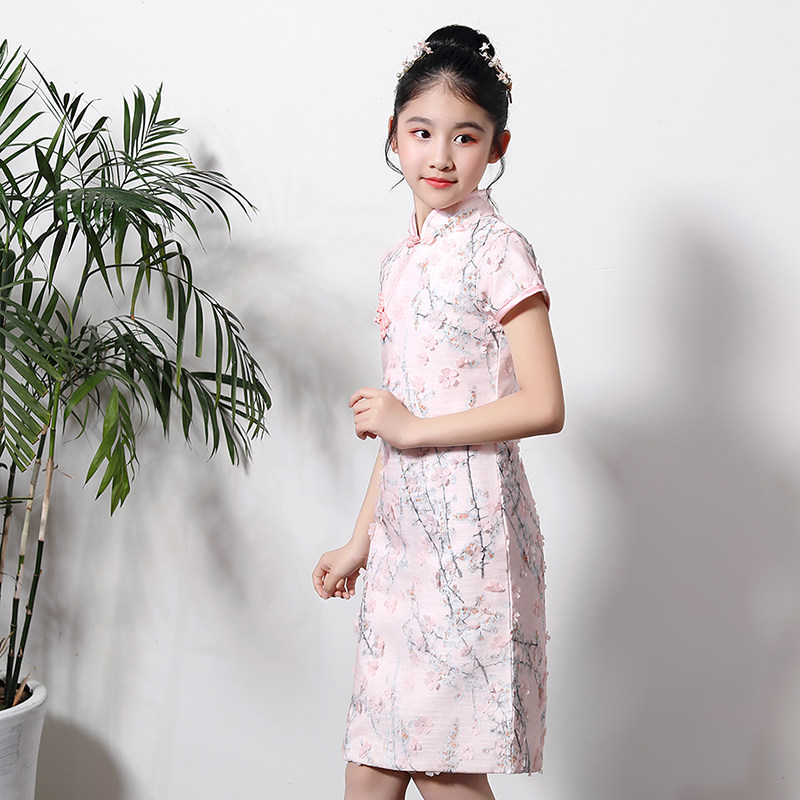 Детское ципао, наряд маленькой принцессы, платье, розовая цветная летняя юбка на девочку, китайский стиль, подходит для подростков
