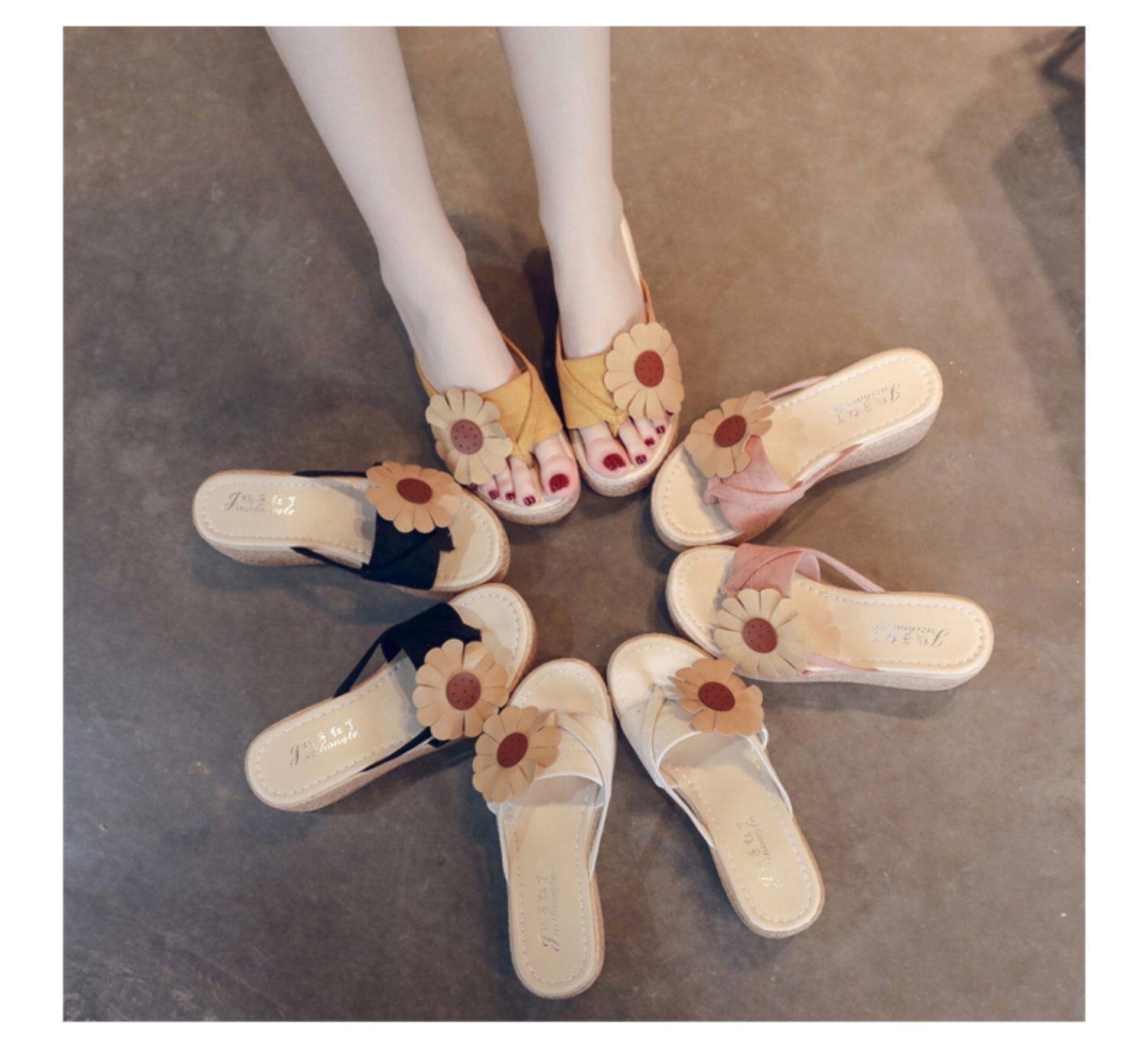 Tide, слайдеры, тапочки, летняя обувь, милые сланцы на платформе, в корейском стиле, в цветочек