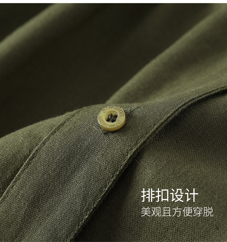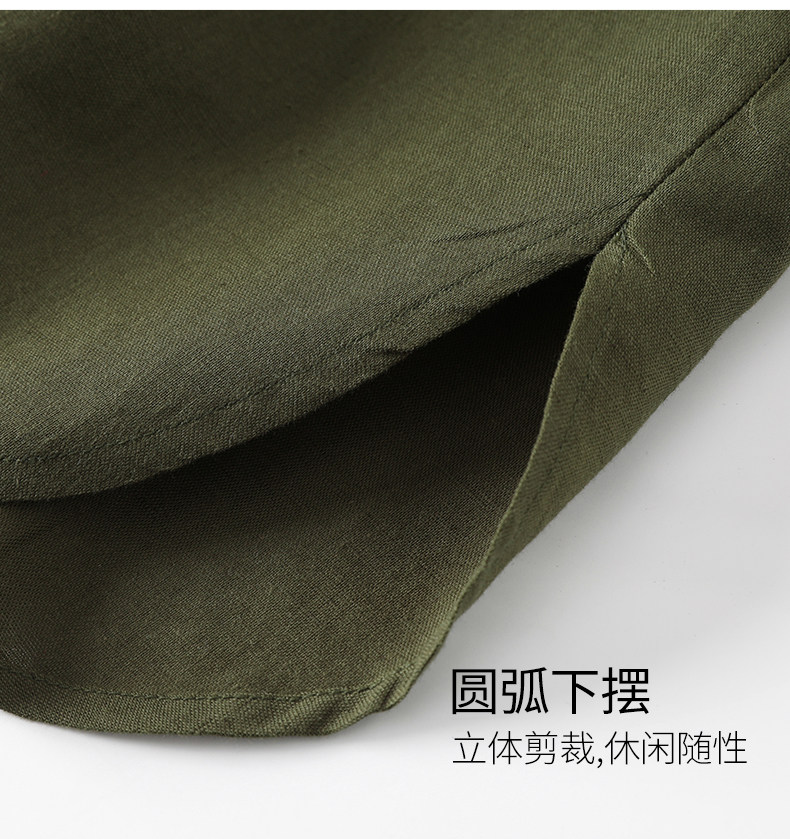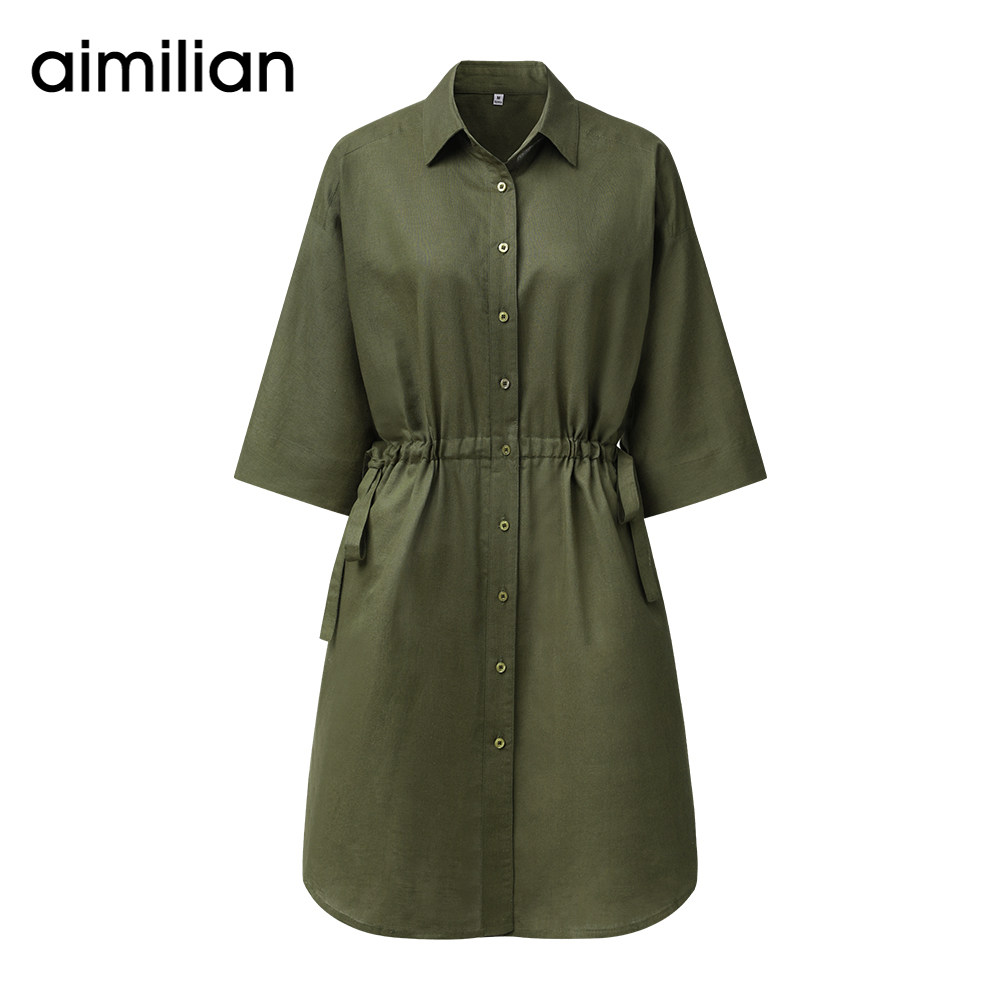 艾米恋 Платье с рукавами, короткая юбка, зеленая рубашка, из хлопка и льна