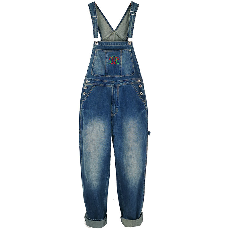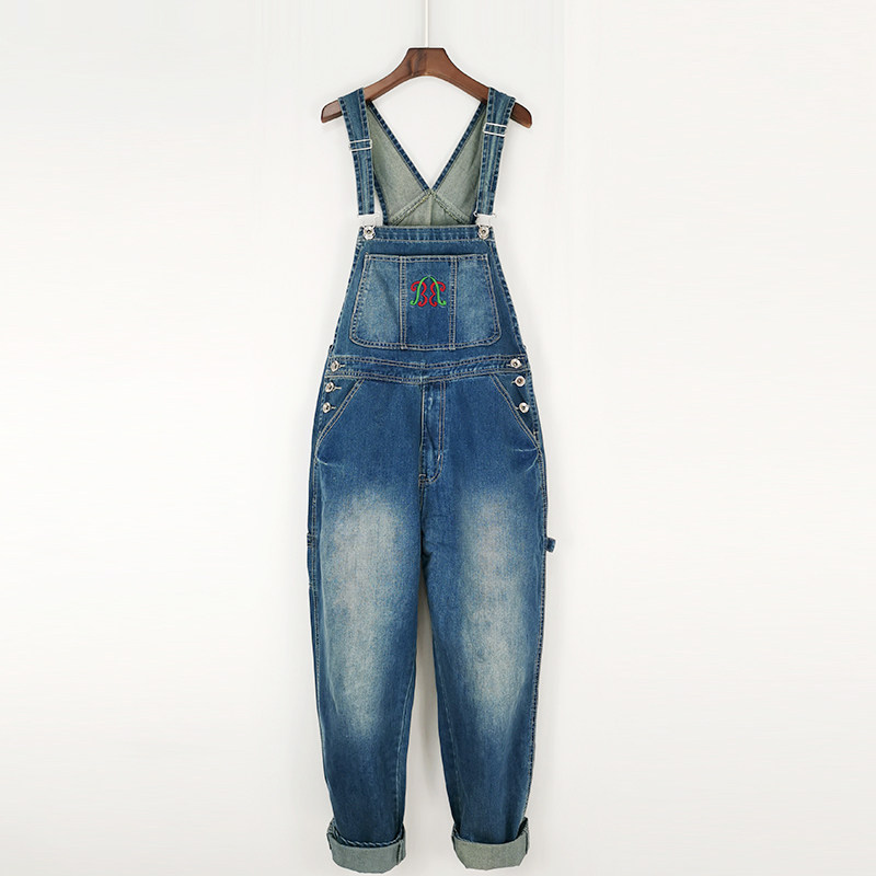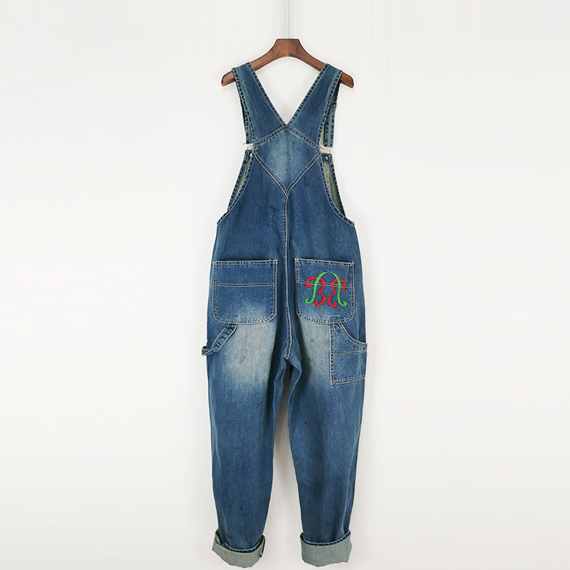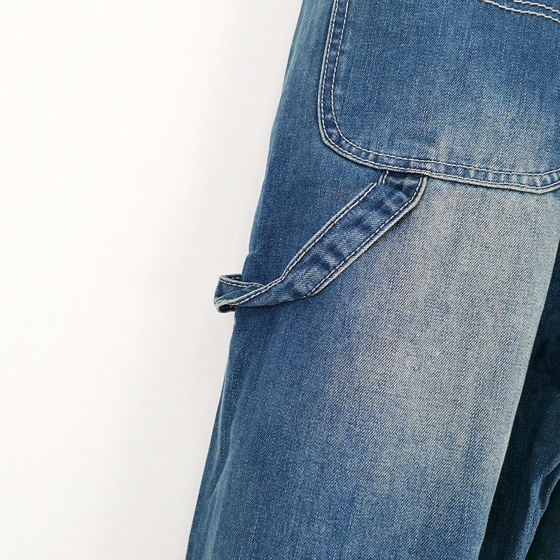 Джинсовый комбинезон, штаны, боди, коллекция 2023, свободный прямой крой, для влюбленных, эффект подтяжки