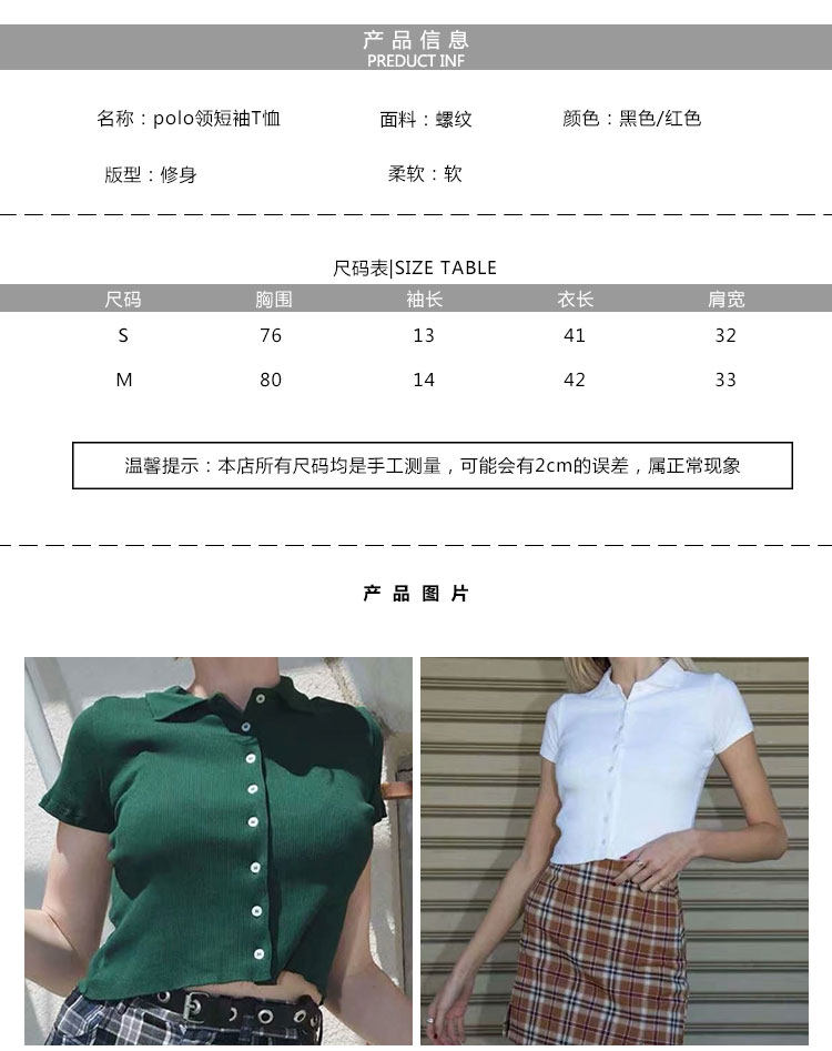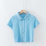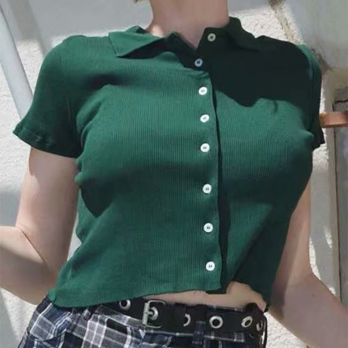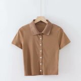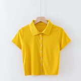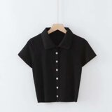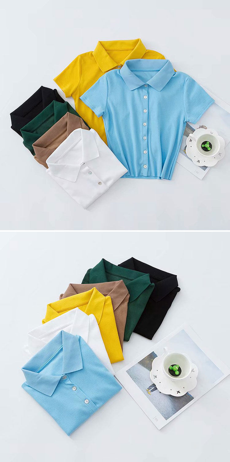 Ретро короткая базовая футболка, воротник поло, высокая талия, облегающий крой, короткий рукав