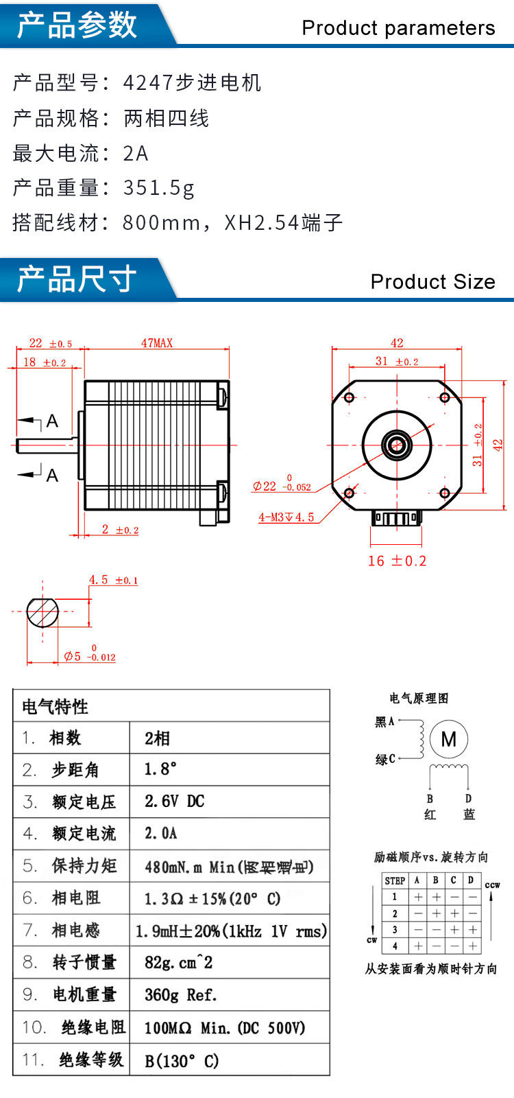 Qi Pang 3D Printer 42 -шаговый двигатель Высокий крутящий момент высокий 0,48 н.