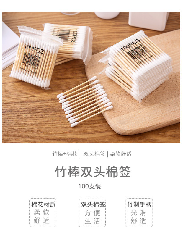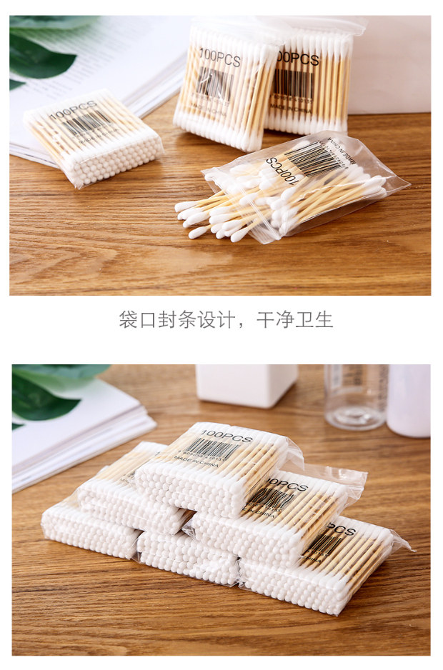 Одноразовые двусторонние ватные палочки, хлопковое средство для снятия макияжа для домашнего использования, ухочистка для ушей, 100 шт