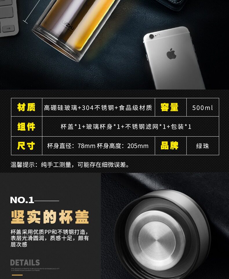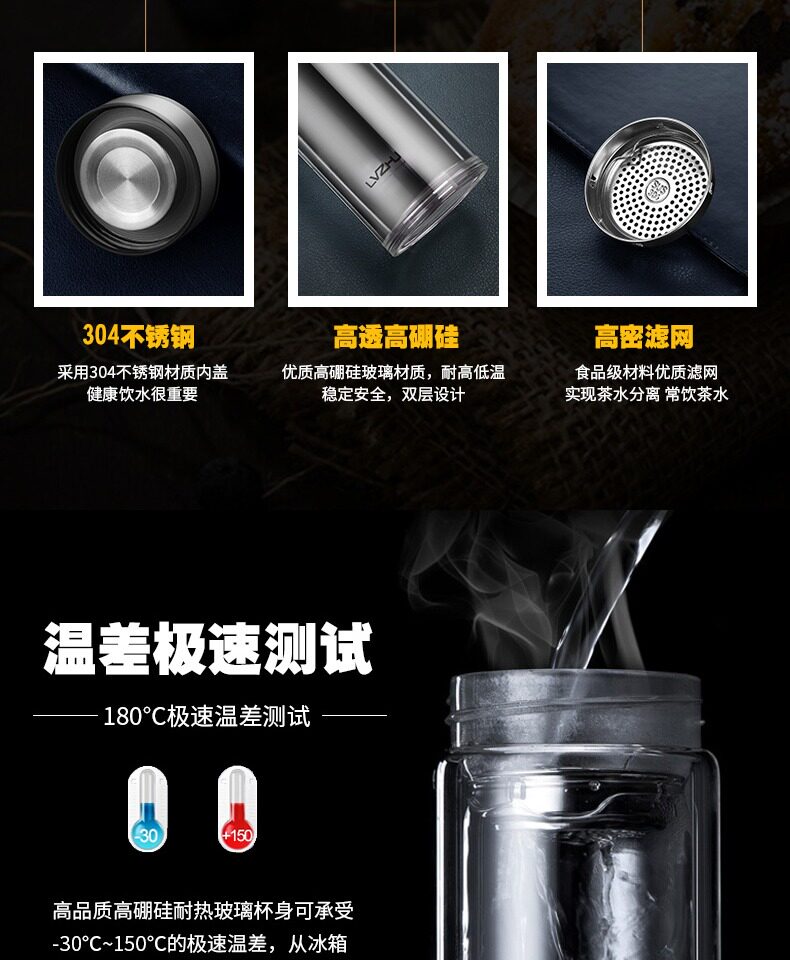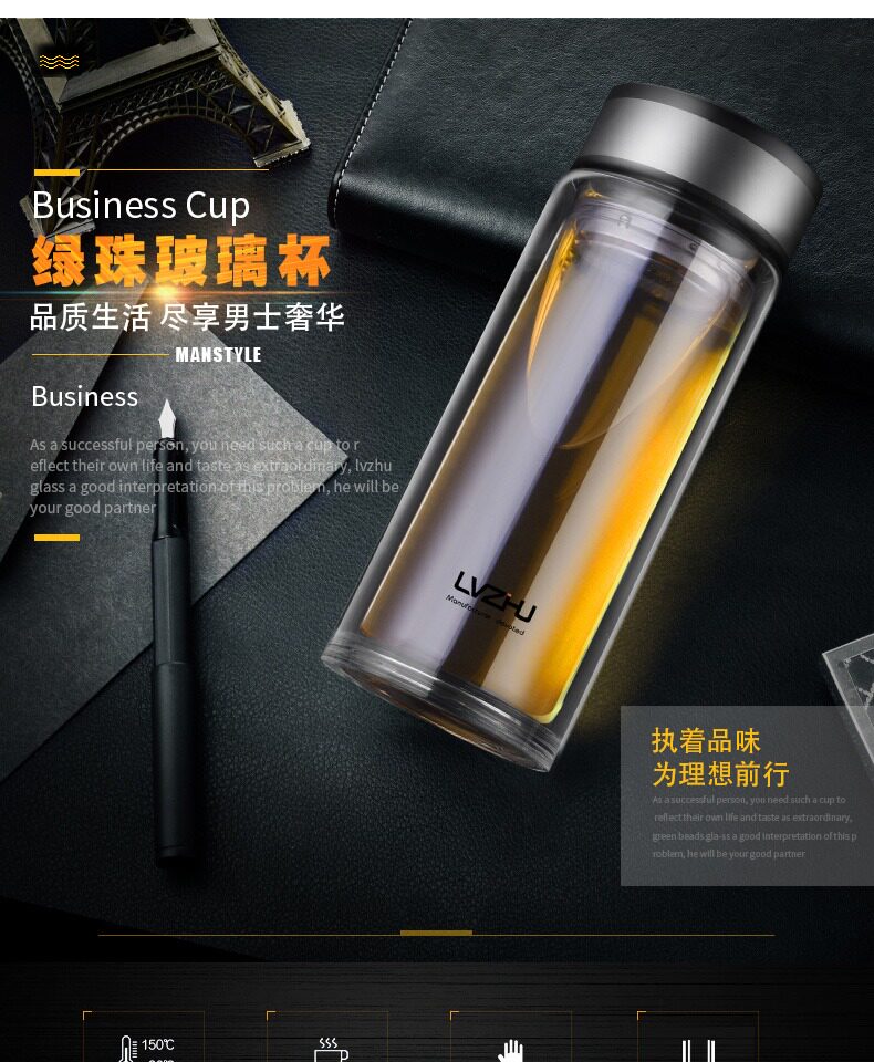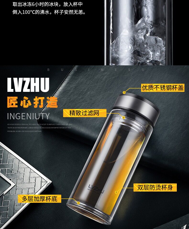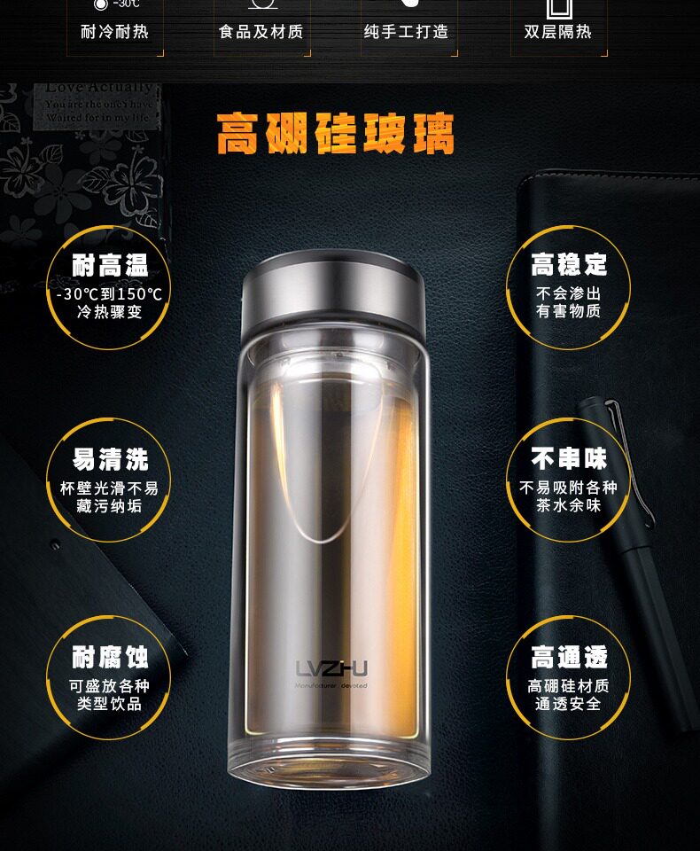 Стеклянная вместительная и большая чайная чашка, фильтр, прозрачный портативный чай