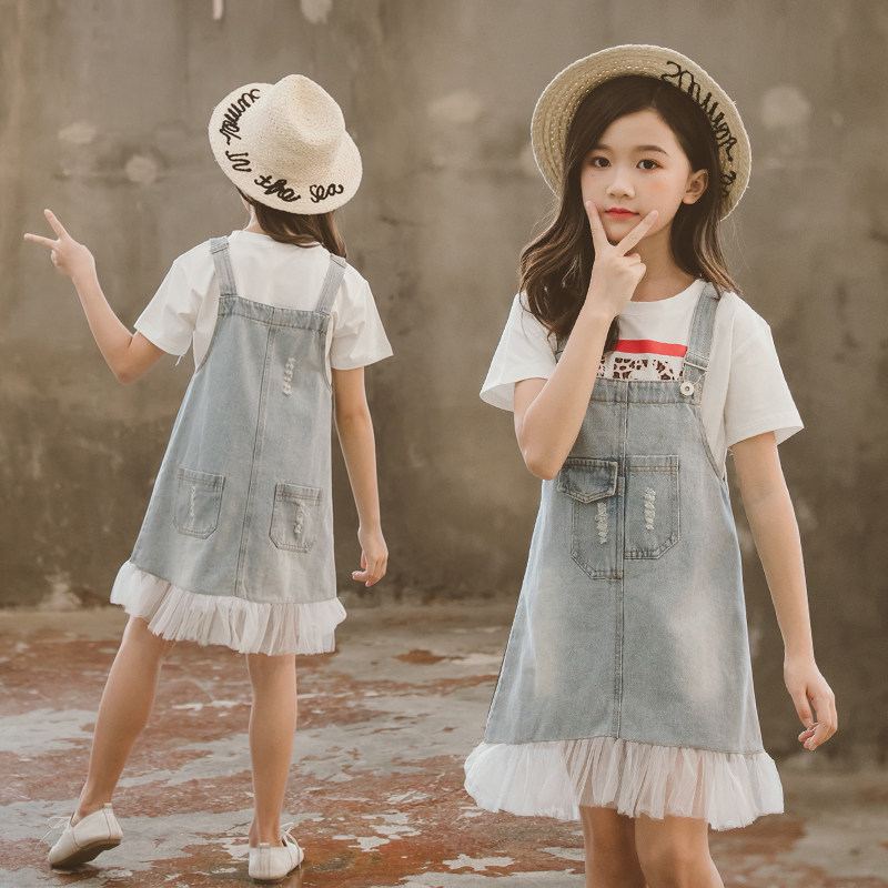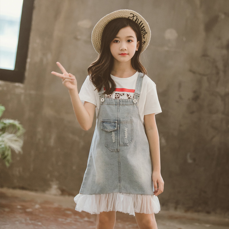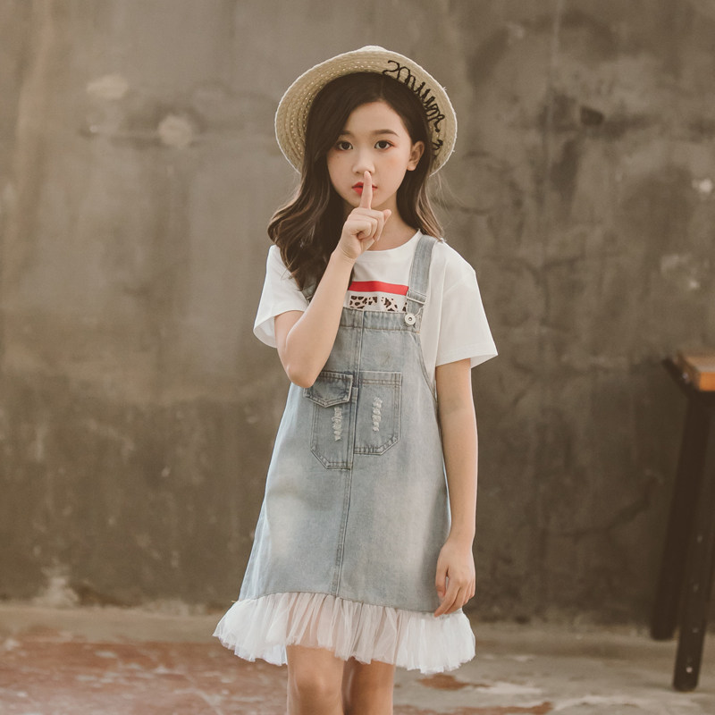 Летний джинсовый сарафан, юбка, универсальное платье, популярно в интернете, в корейском стиле, в западном стиле, высокая талия