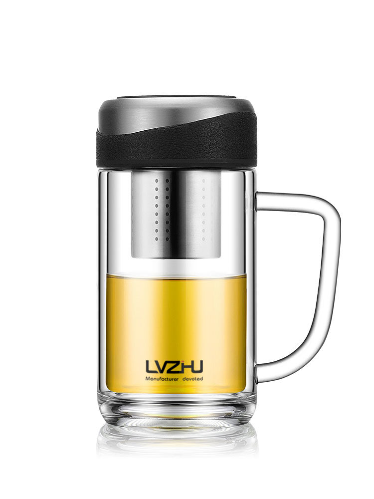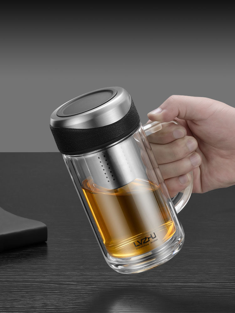 绿珠 Высокая температурная устойчивая стеклянная домашняя чашка чая отделена от водяной чашки с высоким содержанием двойной двойной слойной крышки.