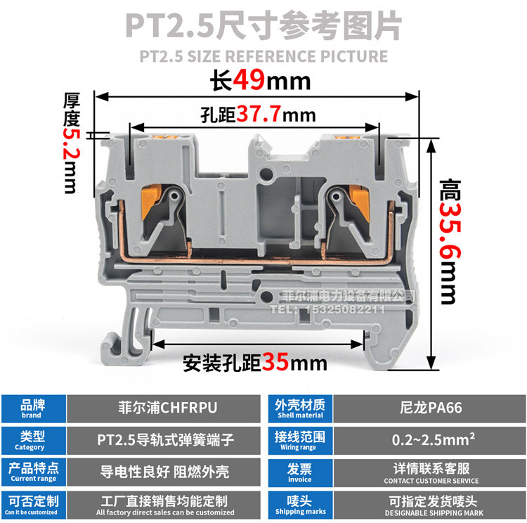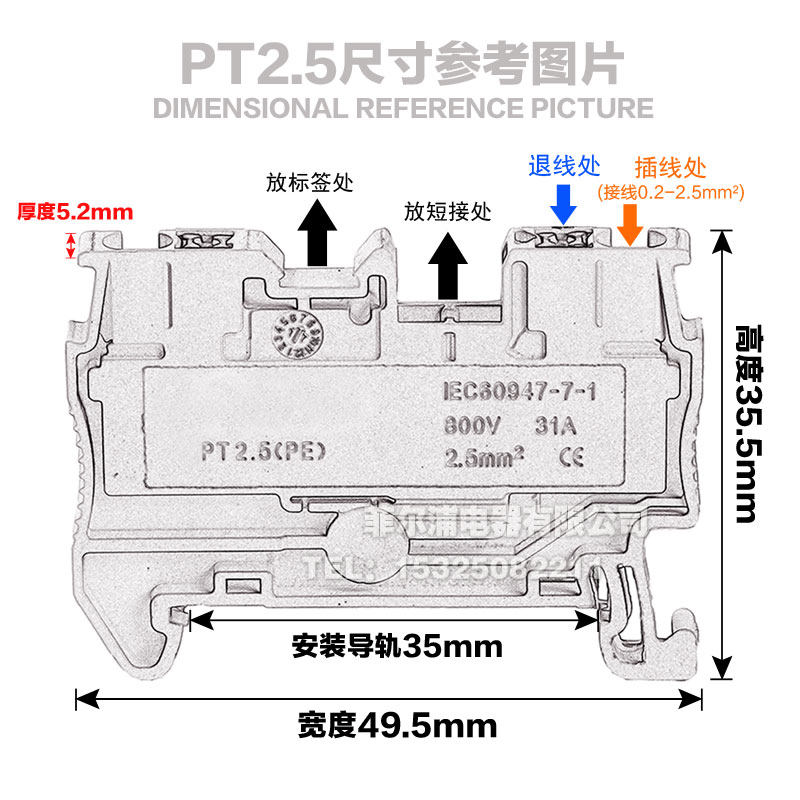 Руководящая рельсовая пружинная терминал PT2,5 0,5-2,5 мм