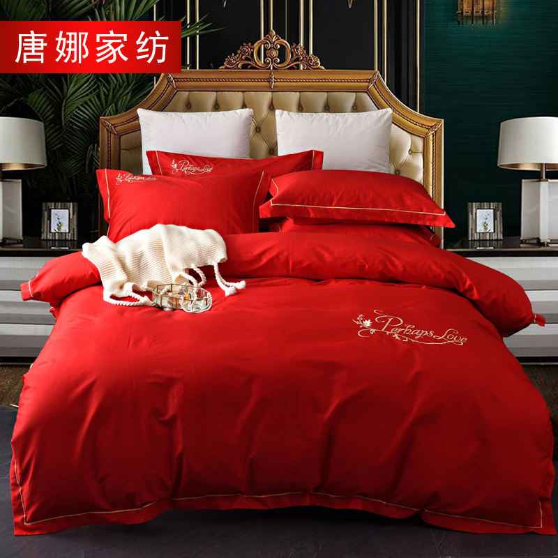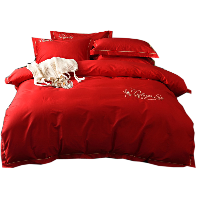 Хлопковый пододеяльник, простыня, красная наволочка, покрывало, 1.8м