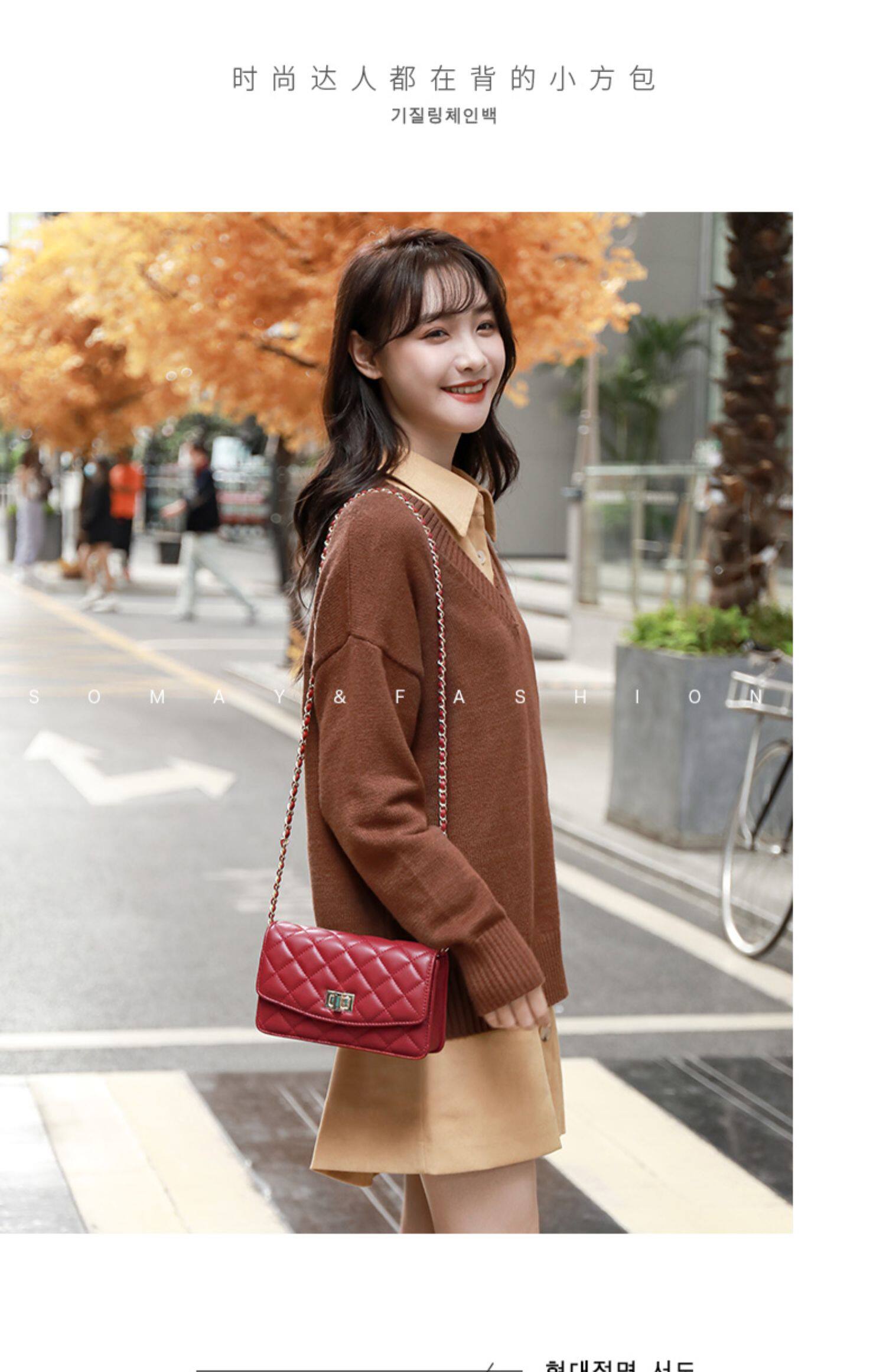 Somay Красная цепь, сумка через плечо, зимняя брендовая небольшая сумка, в стиле Шанель, коллекция 2021
