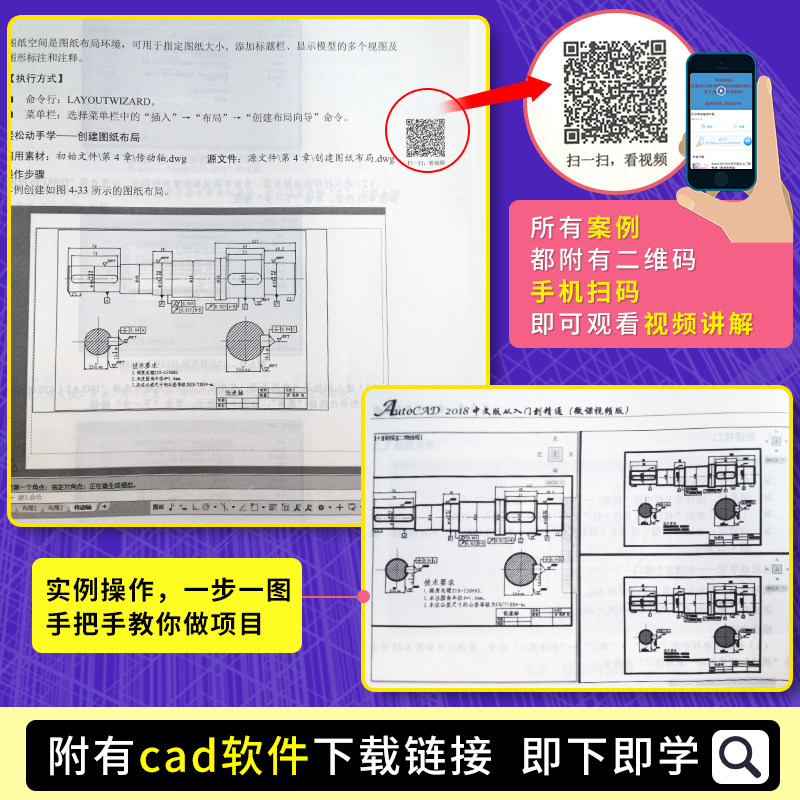 Книга «AutoCAD 2018 китайская версия от начинающего до мастерства (Micro Course Video Edition)» оснащена чрезвычайно богатыми учебными ресурсами, в том числе: 1. 132 эпизода полного синхронного объяснения микро-видео, сканирование QR-кода, и вы можете смотреть видео в любое время и везде, что удобно; 2. исходные файлы и начальные файлы всего экземпляра книги могут быть вызваны, сравниваются и изучены напрямую, что является более эффективным. Дополнительные ресурсы включают в себя: 1. AutoCAD сложный набор задач, набор навыков применения AutoCAD, набор общих плиток AutoCAD, библиотека AutoCAD Common Pattern Pattern, AutoCAD Command Command Quick Perform Руководство по проверке, клавиша autoCAD Клавиша Quick Проверка, кнопку инструмента AutoCAD Quick проверка и т. Д.; 2.9 Наборы планов дизайна чертежей AutoCAD и синхронных видео объяснений могут расширить ваши горизонты. 3. AutoCAD Certification Exam Recembus и сертификационный экзамен банк.