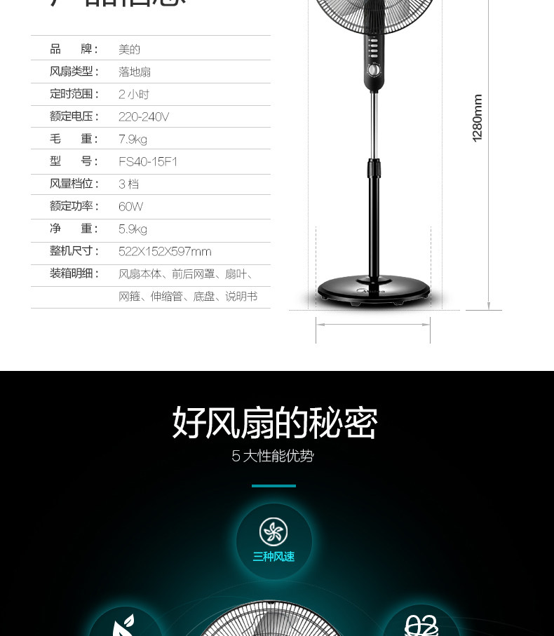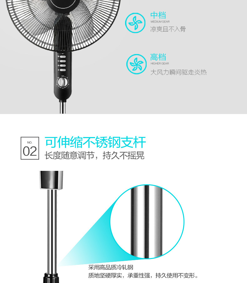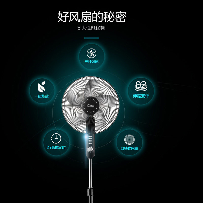 Электрическая посадочная посадка вентилятора Midea Mid FS40-15F1 Вертикальная высота подъема регулирует встряхивание времени на голову общежитие