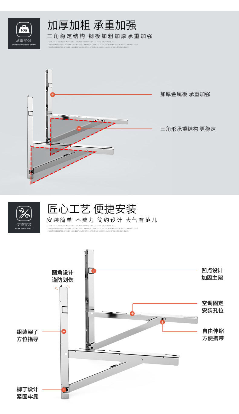 贝石 Кондиционирование воздуха наружное кронштейн подходит для Xiaomi Большая 1,5 лошадиных сил/2p/3p из нержавеющей стали 304 Утолщенная рама на открытом воздухе