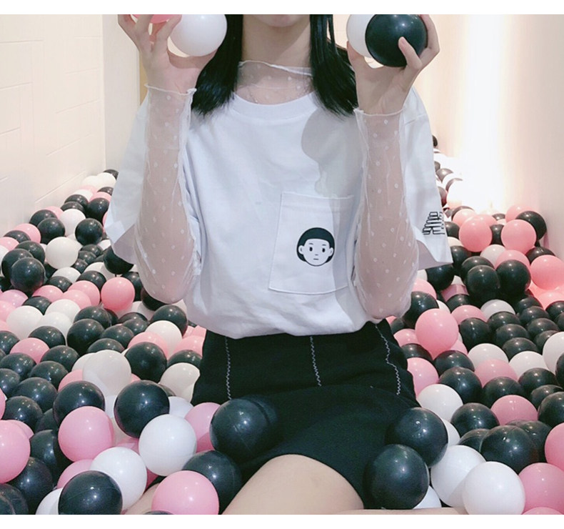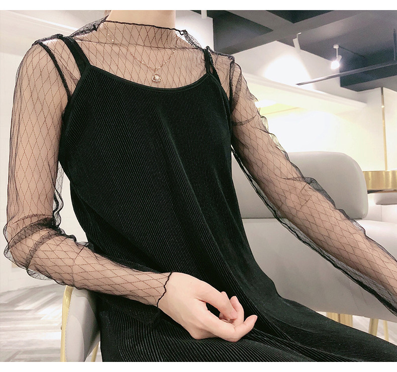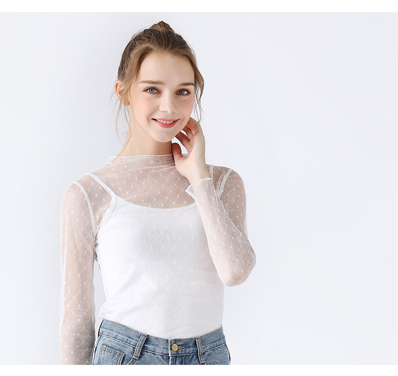 艾米恋 Базовый приятный телу черный кружевной летний сексуальный белый лонгслив