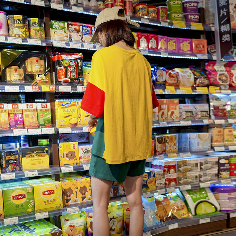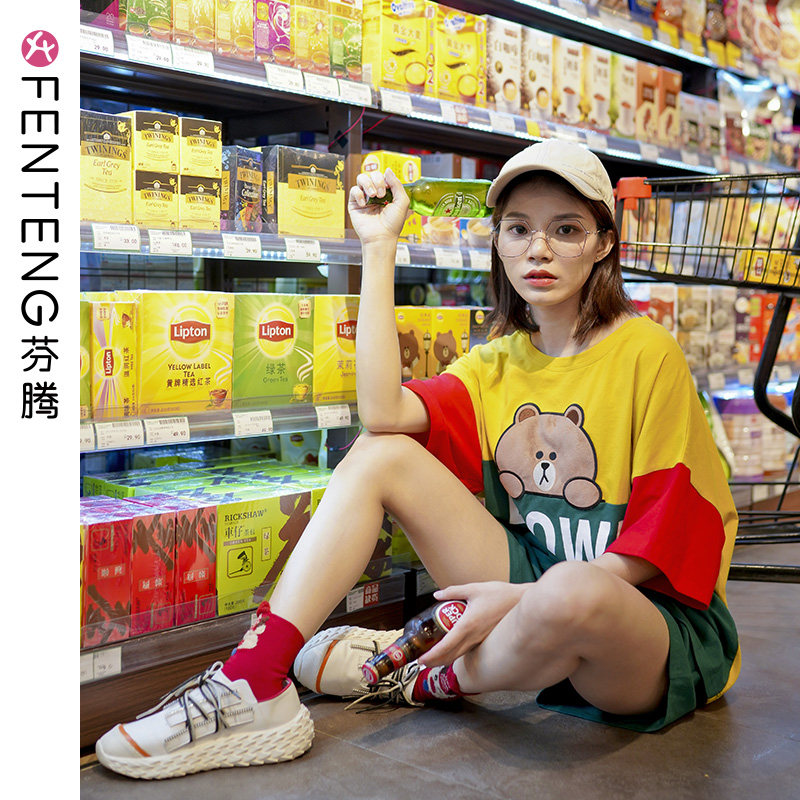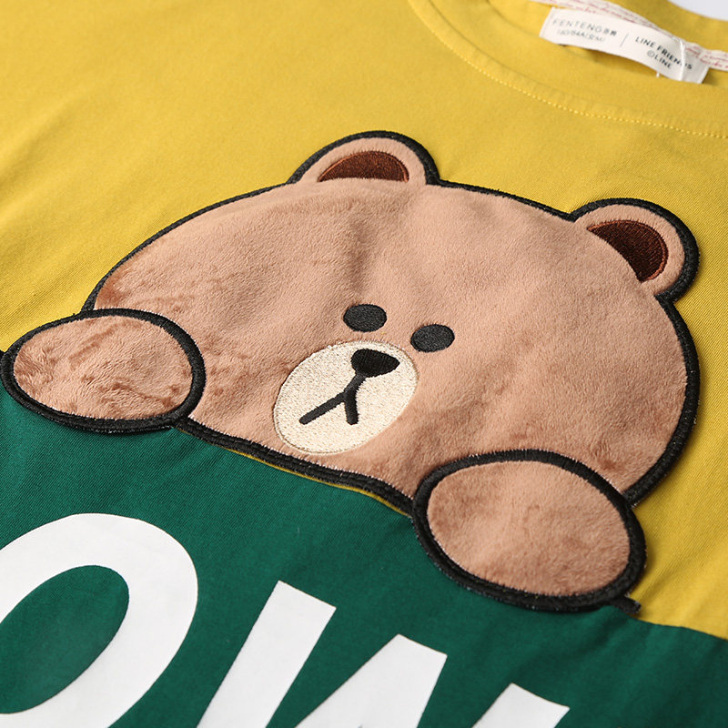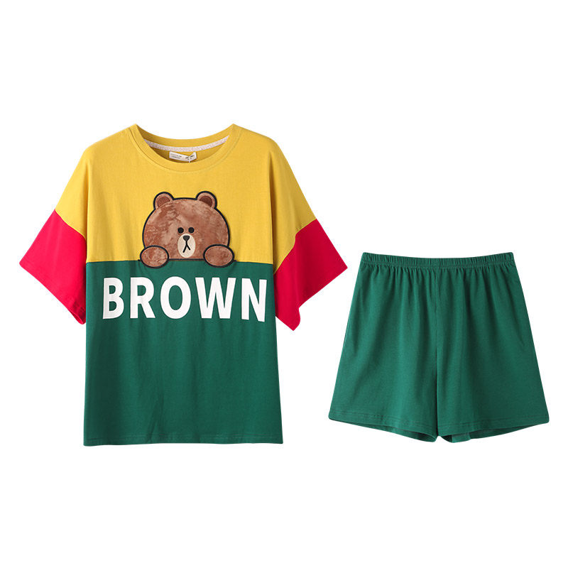 芬腾 Хлопковая мультяшная пижама, тонкий комплект, короткий рукав, свободный крой