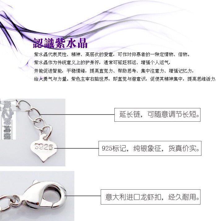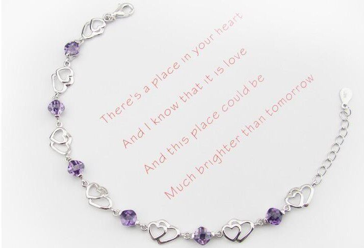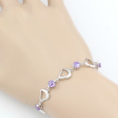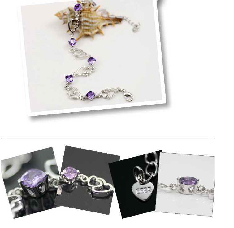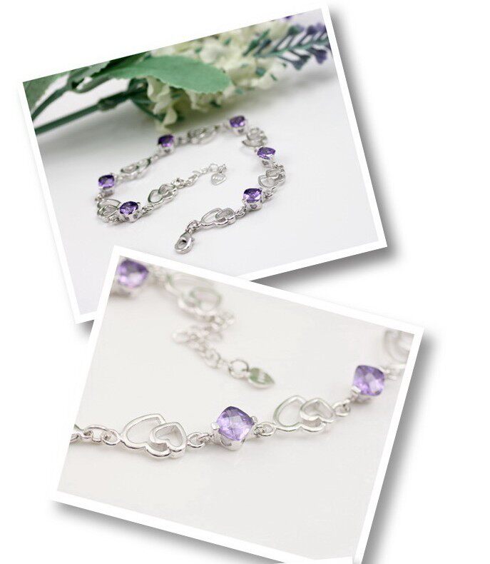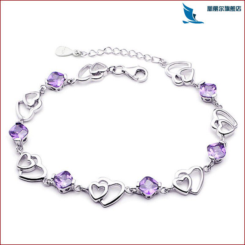 Платиновый модный браслет с аметистом, серебро 925 пробы, в корейском стиле