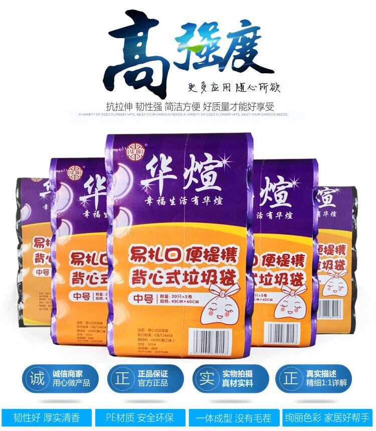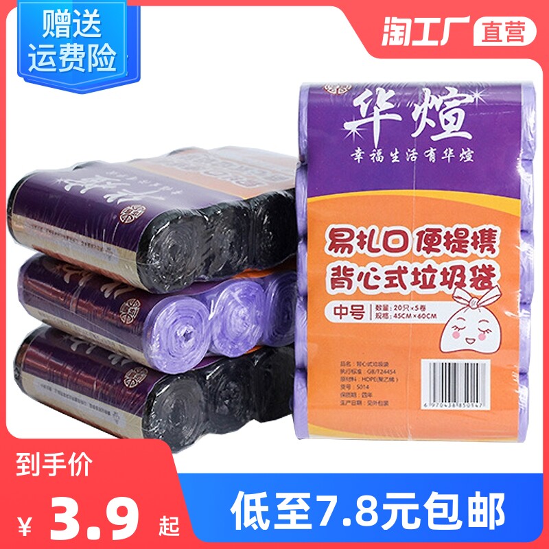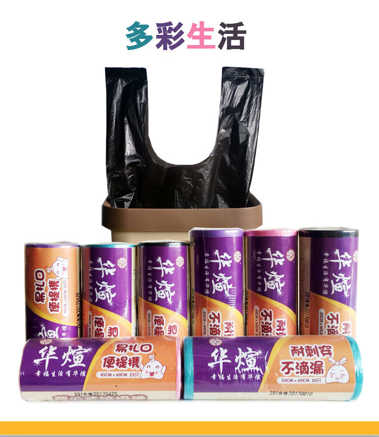 华煊 Портативная майка топ, большой черный цветной мусорный мешок для домашнего использования, увеличенная толщина
