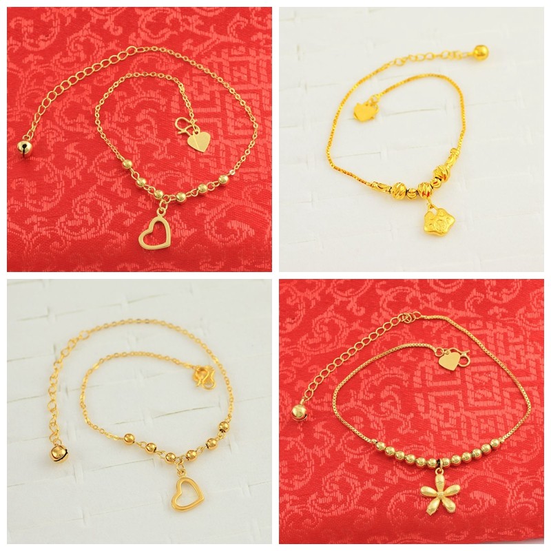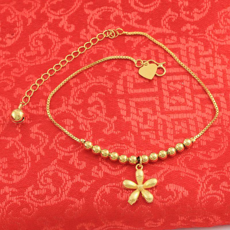 Золотой браслет на ногу, подвеска, гипоаллергенный защитный амулет, 24 карат, в цветочек