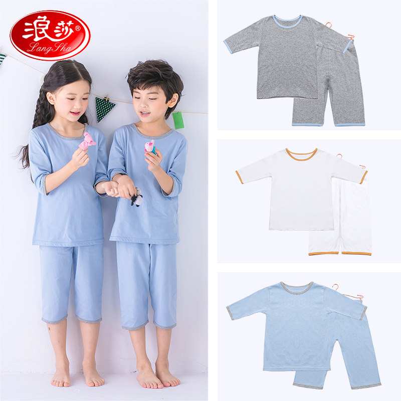 浪莎 Детская хлопковая тонкая белая пижама для мальчиков, средней длины, короткий рукав