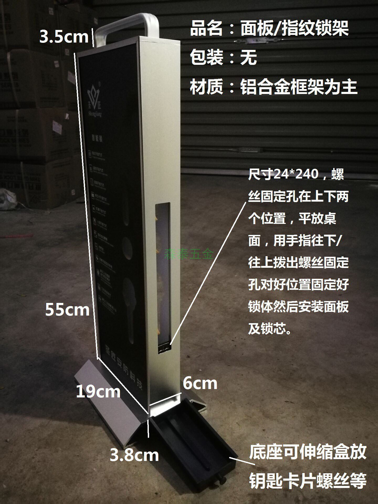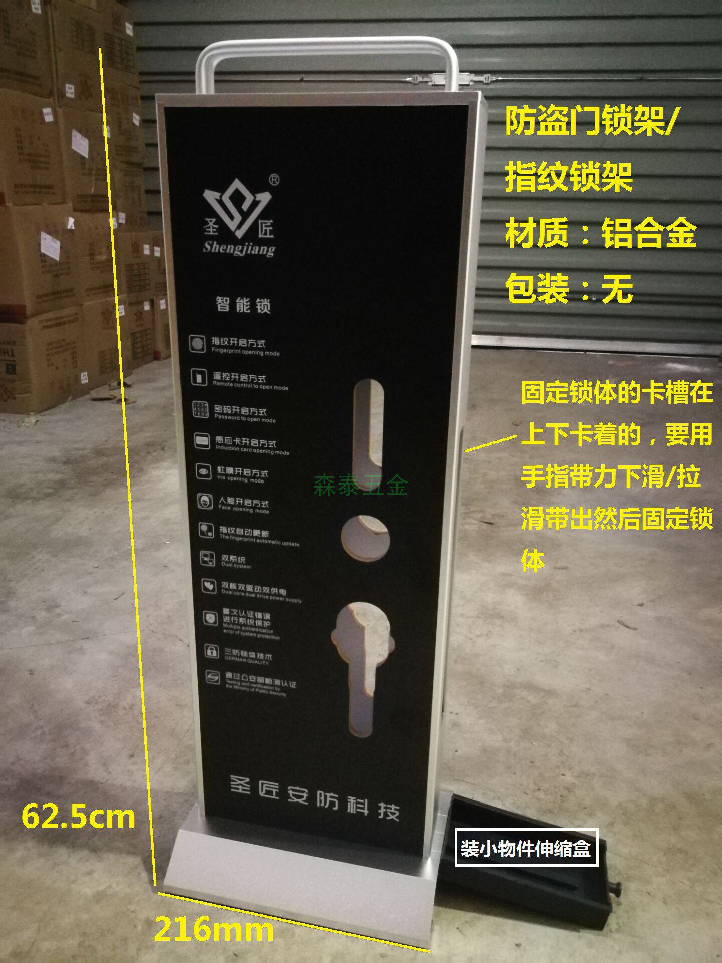 Эта рама блокировки сплава алюминиевого сплава может быть оснащена расширенными и расширенными замками отпечатков пальцев, панелью с ущерб (в частности, см. Размер изображения), с ручками и небольшой коробкой для удержания карт, ключей, винтов и других небольших аксессуаров.