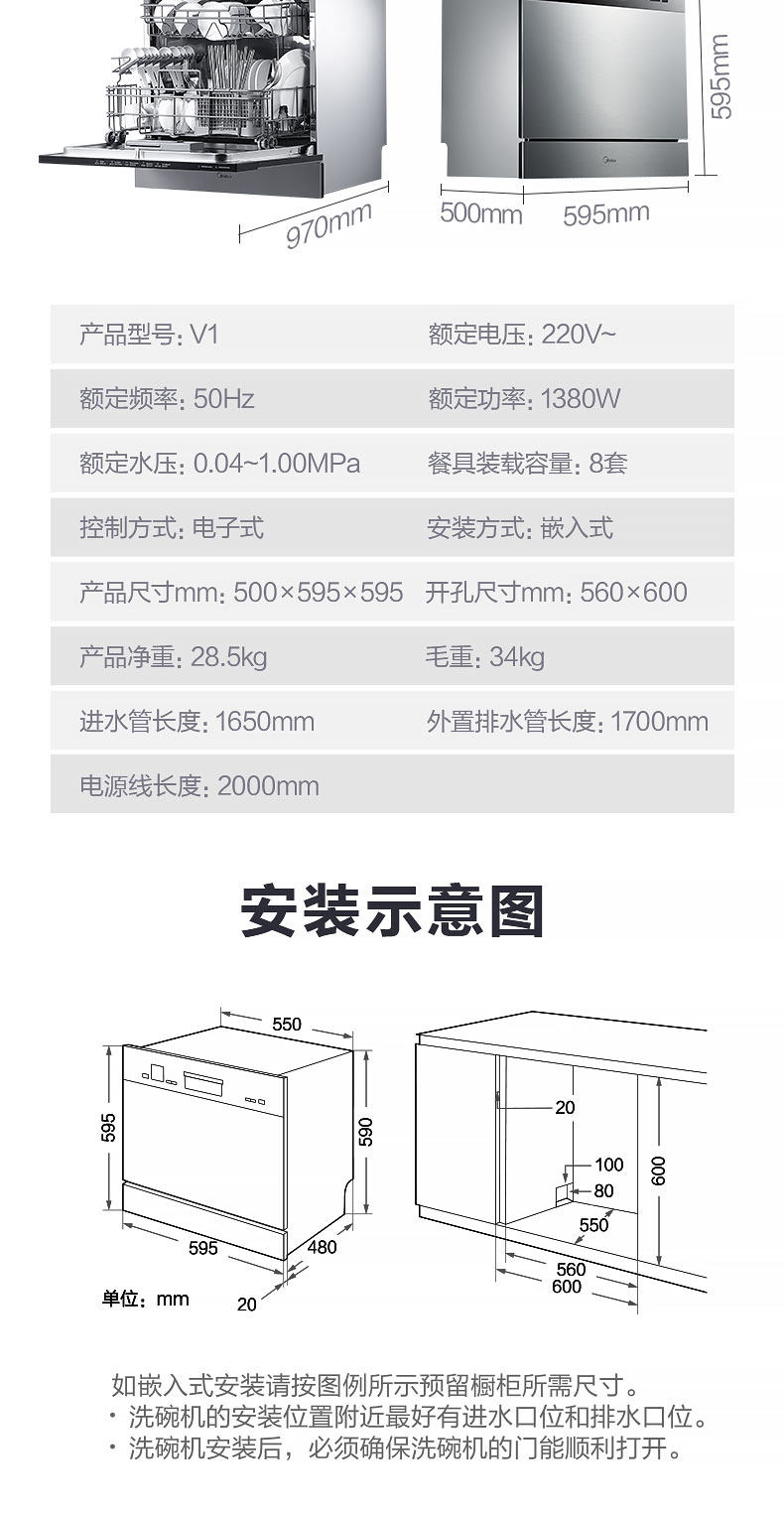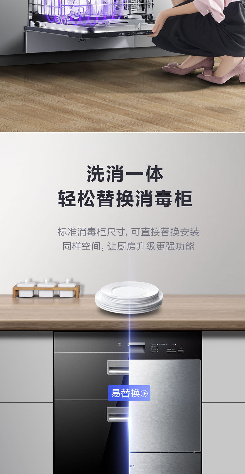 Midea/美的 Посудомоечная машина V1 Полностью автоматический дом 8 набор интеллектуального измерителя ультрафиолетового измерения и сушки все -ин