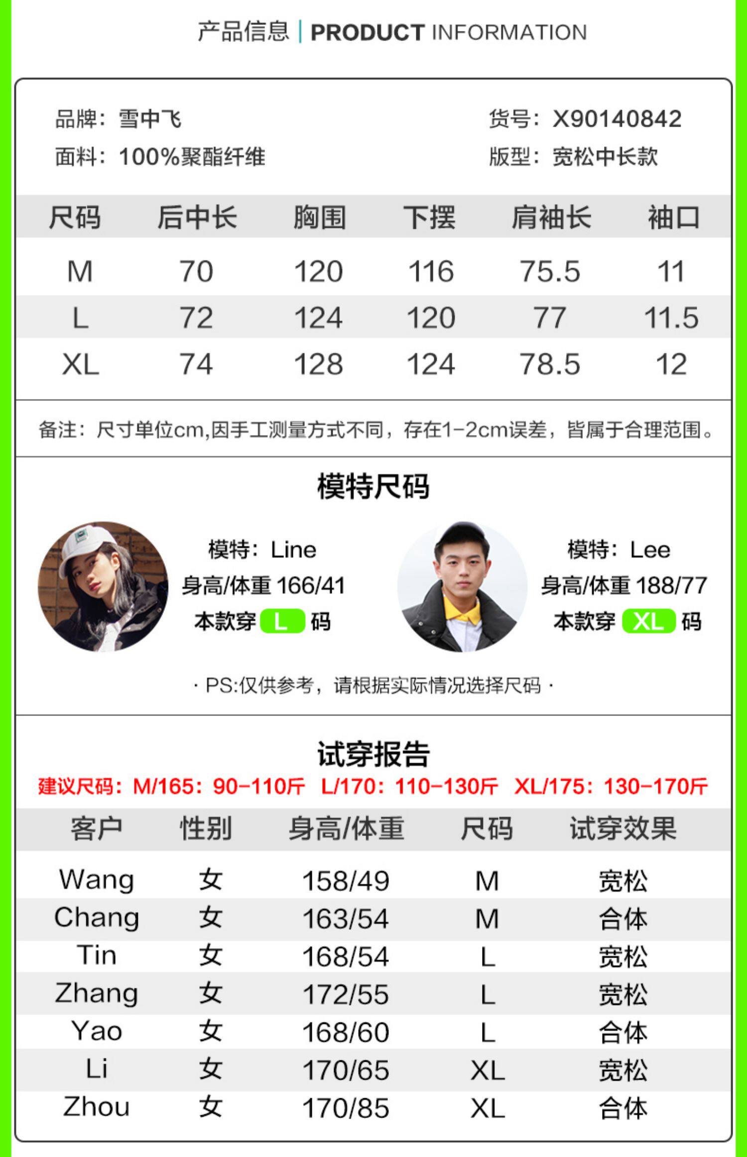 - 185/XXXL 170/L 160/S