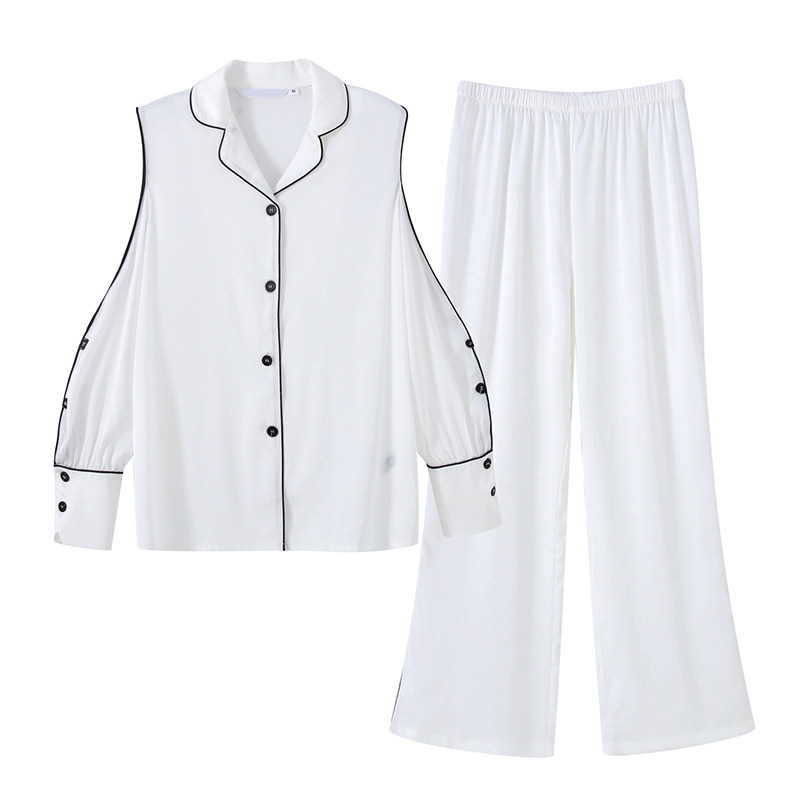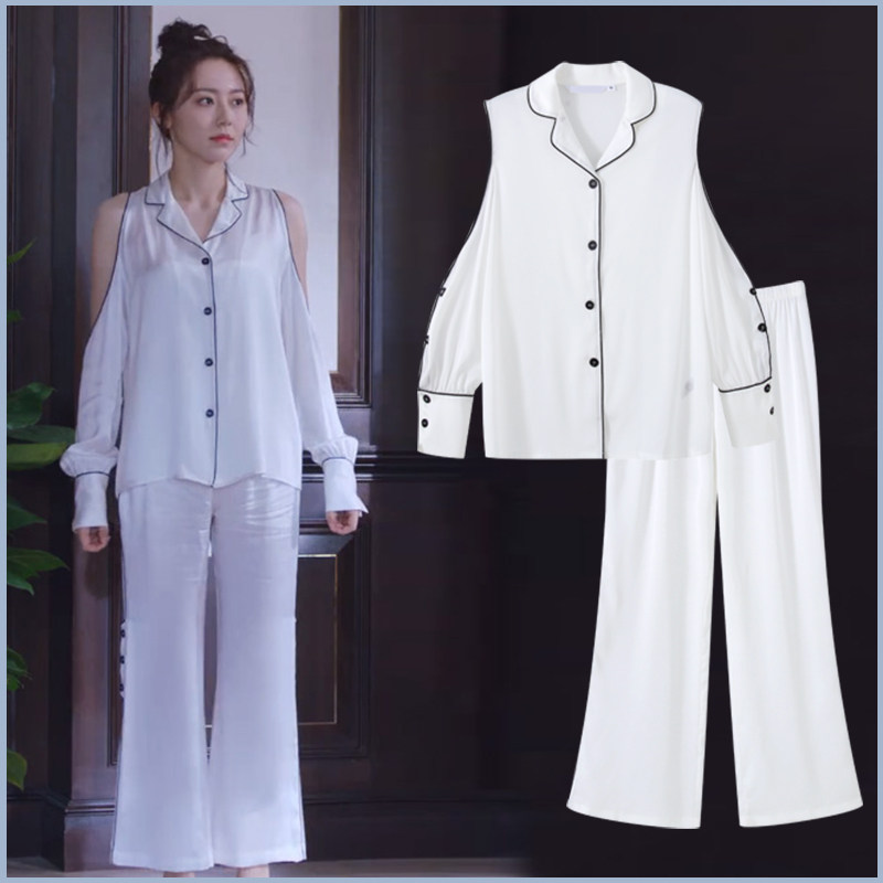 Летняя тонкая шелковая белая осенняя демисезонная пижама, изысканный стиль